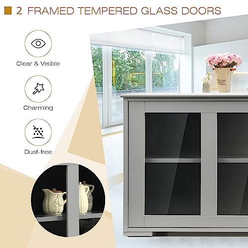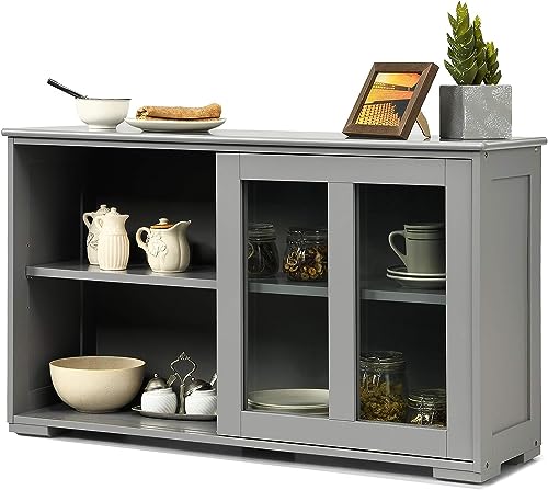 Byroce Sideboard Buffet Cabinet, Stackable Storage Coffee Bar Cabinet with Adjustable Shelf & Glass Sliding Doors, Wood Cupboard Credenza Console Table for Kitchen Dining Living Room (2, Coffee)