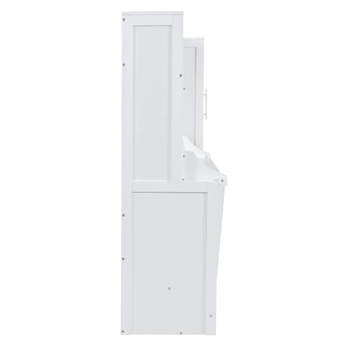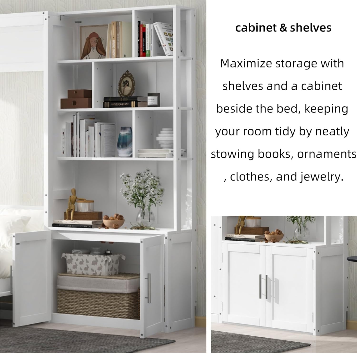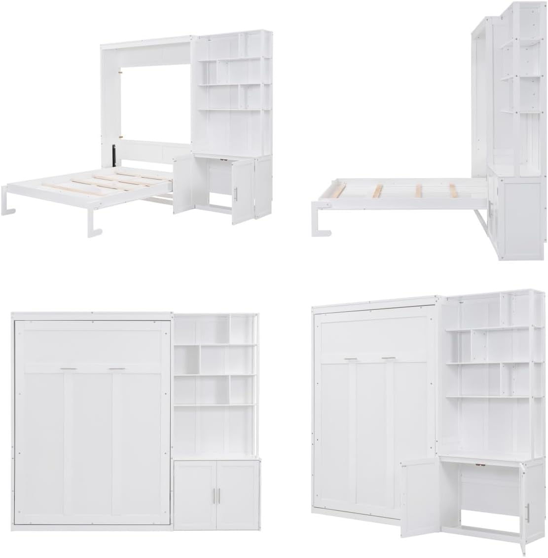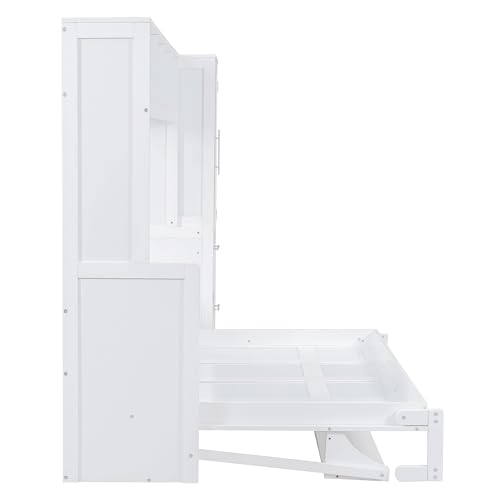 Merax Full Size Murphy Bed Cabinet with Multiple Storage Shelves, Wood Foldable Hidden Wall Platform Bedframe Chest for Home, Bedroom, Office, Small Room, Apartment, white