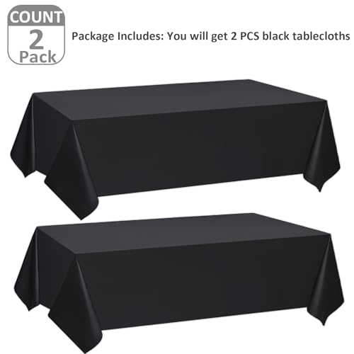 2 Pack Tablecloths 54 x 108 Inch Black Table Covers Disposable Decorative Table Cloths for Dining, Buffet Party and Camping