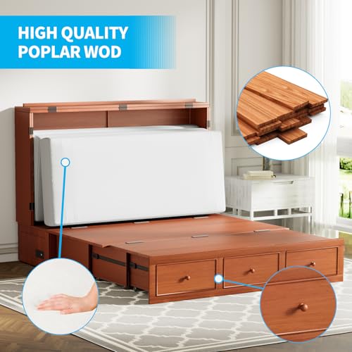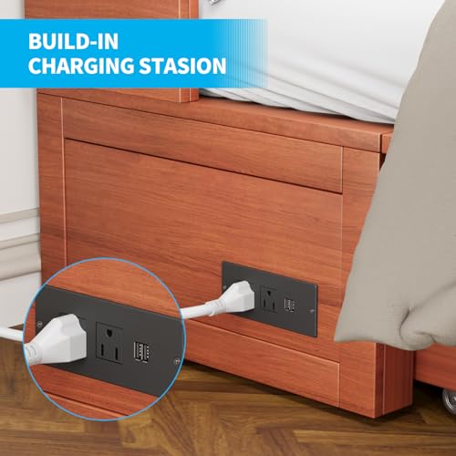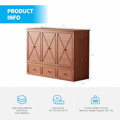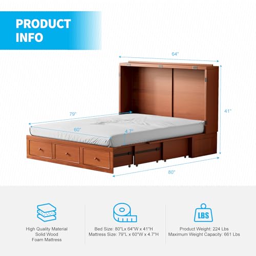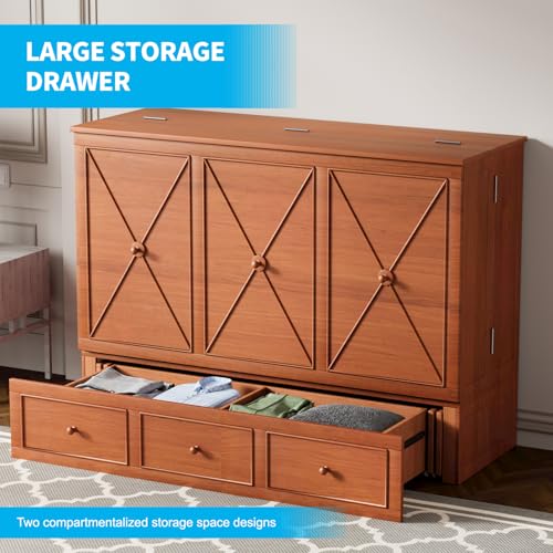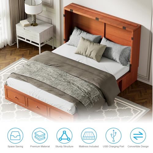 Queen Murphy Bed, Murphy Bed Cabinet with USB Charging Ports, Bottom Storage Drawers, Hidden Murphy Bed with Mattress Included, Wall Bed for Bedroom, Guest Room