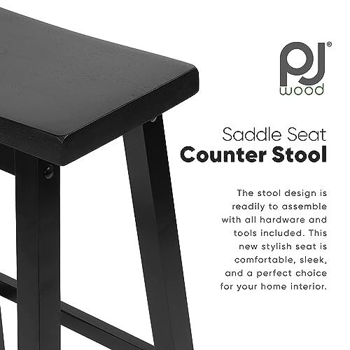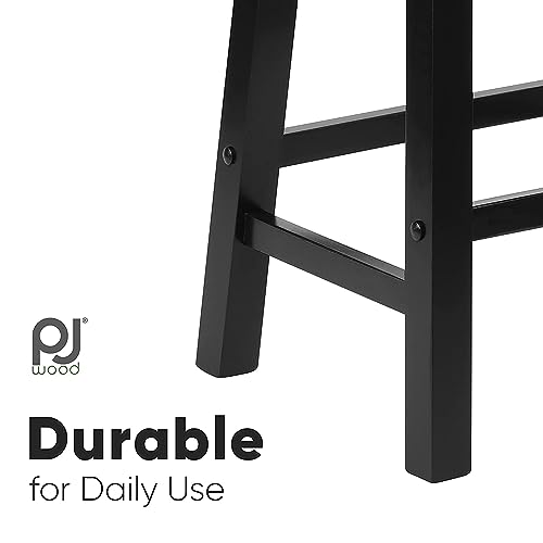 PJ Wood Classic Modern Solid Wood Backless Saddle Seat, 24 Inches Tall Easy Assemble Counter Stool with Durable Construction, Black (2 Pack)