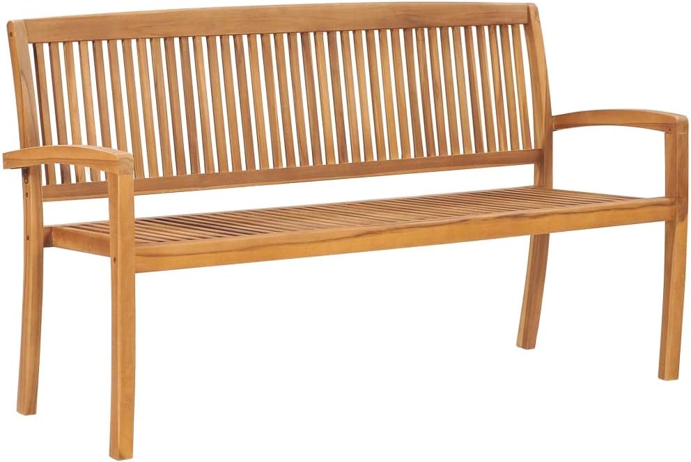 Stacking Patio Bench with Cushion 62.6" Solid Teak Wood,Teak Patio Bench with Cushion for Outdoor Comfort and Style Patio Furniture & Accessories