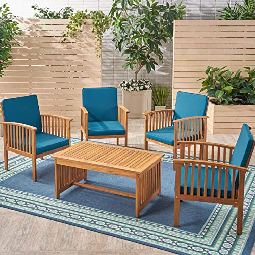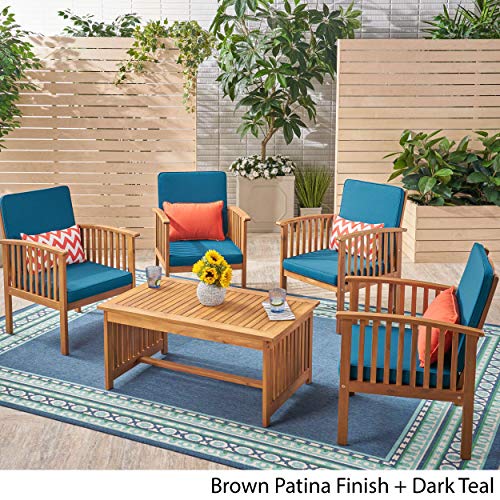 GDFStudio Outdoor 4-Seater Acacia Wood Club Chairs with Coffee Table, Brown Patina Finish and Cream