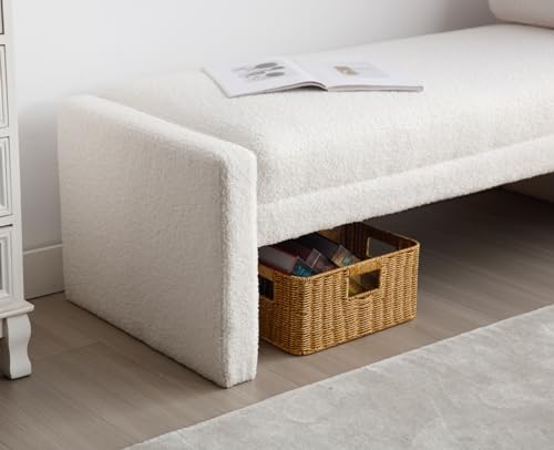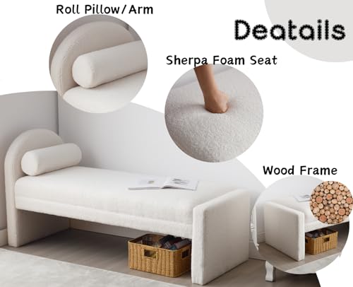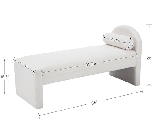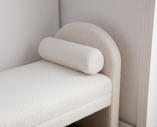 EALSON Velvet Entryway Bench Bedroom Bench End of Bed Modern Upholstered Ottoman Bench Window Seating Bench with Wood Frame/Arm/Roll Pillow for Living Room/Hallway, Beige