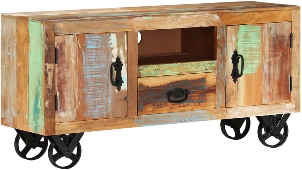 TV Cabinet Wooden TV Cabinet TV Cabinet with Storage Media Console TV Furniture 43.3"x11.8"x20.9" Solid Reclaimed Wood for Living Room, Hallway, Entrance, Farmhouse, Hotel