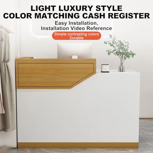 Reception Counter Front Desk Reception Counter Retail Checkout Counter Table with Lockable Drawers and Cabinet Reception Desk with Counter for Clothing Store Milk Tea Shop Beauty Salon.(Yellow,100x45x