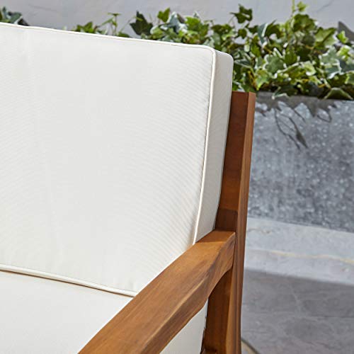 GDFStudio 4-Seater Sectional Sofa Set for Patio with Club Chair, Ottoman, and Coffee Table, Acacia Wood, Gray Finish with Red Outdoor Cushions