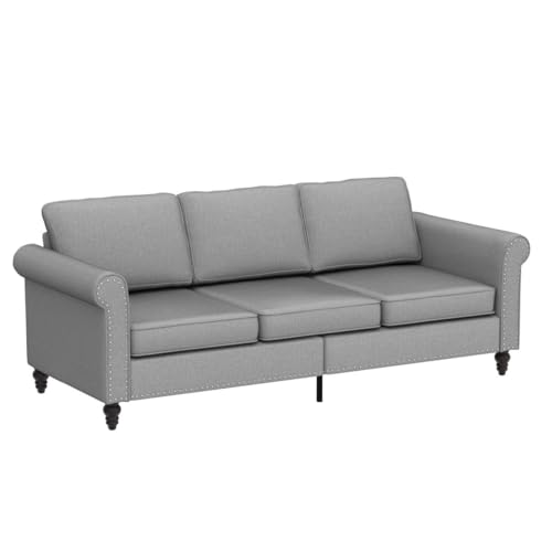 2 Piece Living Room Sofá Set, 3 Seat Sofa and Armchair with Solid Wood Frame and 4 Gourd Shapes Legs for Home/Bedroom/Apartment(Beige)
