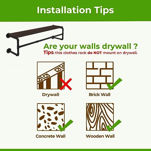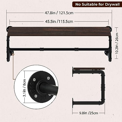 GREENSTELL Clothes Rack with Top Shelf, 41in Industrial Pipe Wall Mounted Garment Rack, Space-Saving Display Hanging Clothes Rack, Heavy Duty Detachable Multi-Purpose Hanging Rod for Closet Storage