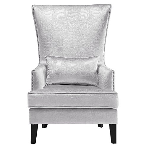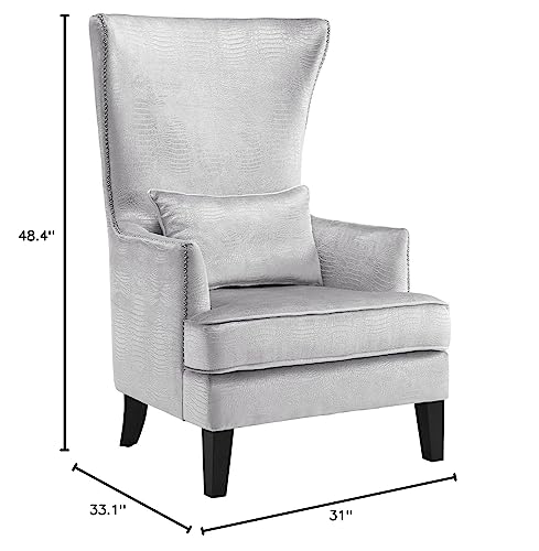 TOV Furniture The Bristol Collection Contemporary Velvet Upholstered Tall Living Room Parlor Chair with Nailhead Trim, Sea Blue