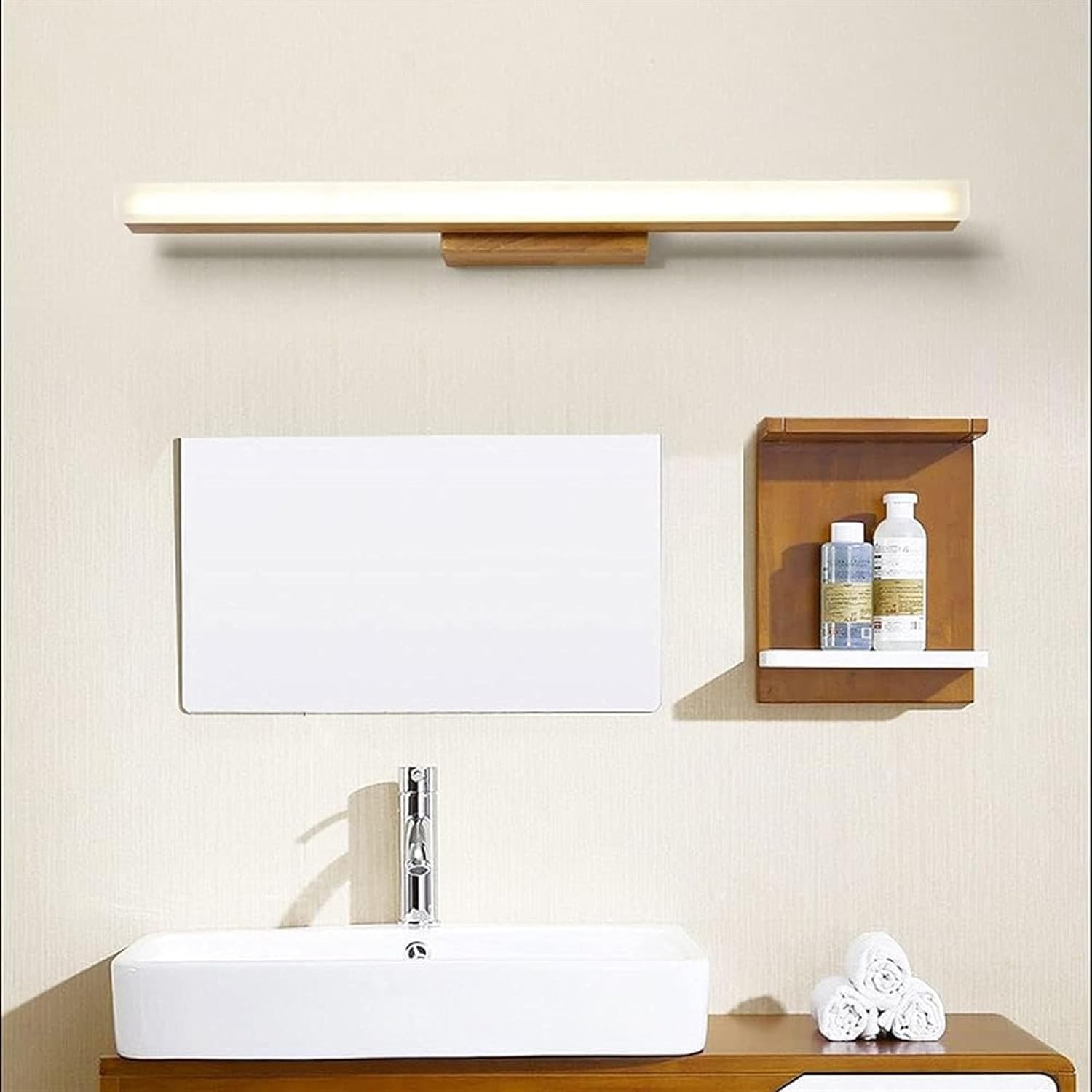 Nordic Wood Vanity Light LED Linear Bathroom Mirror Lamp Modern Long Strip Vanity Wall Sconce Simplicity Wooden Mirror Front Lighting Fixtures for Makeup Washroom Dressing Table