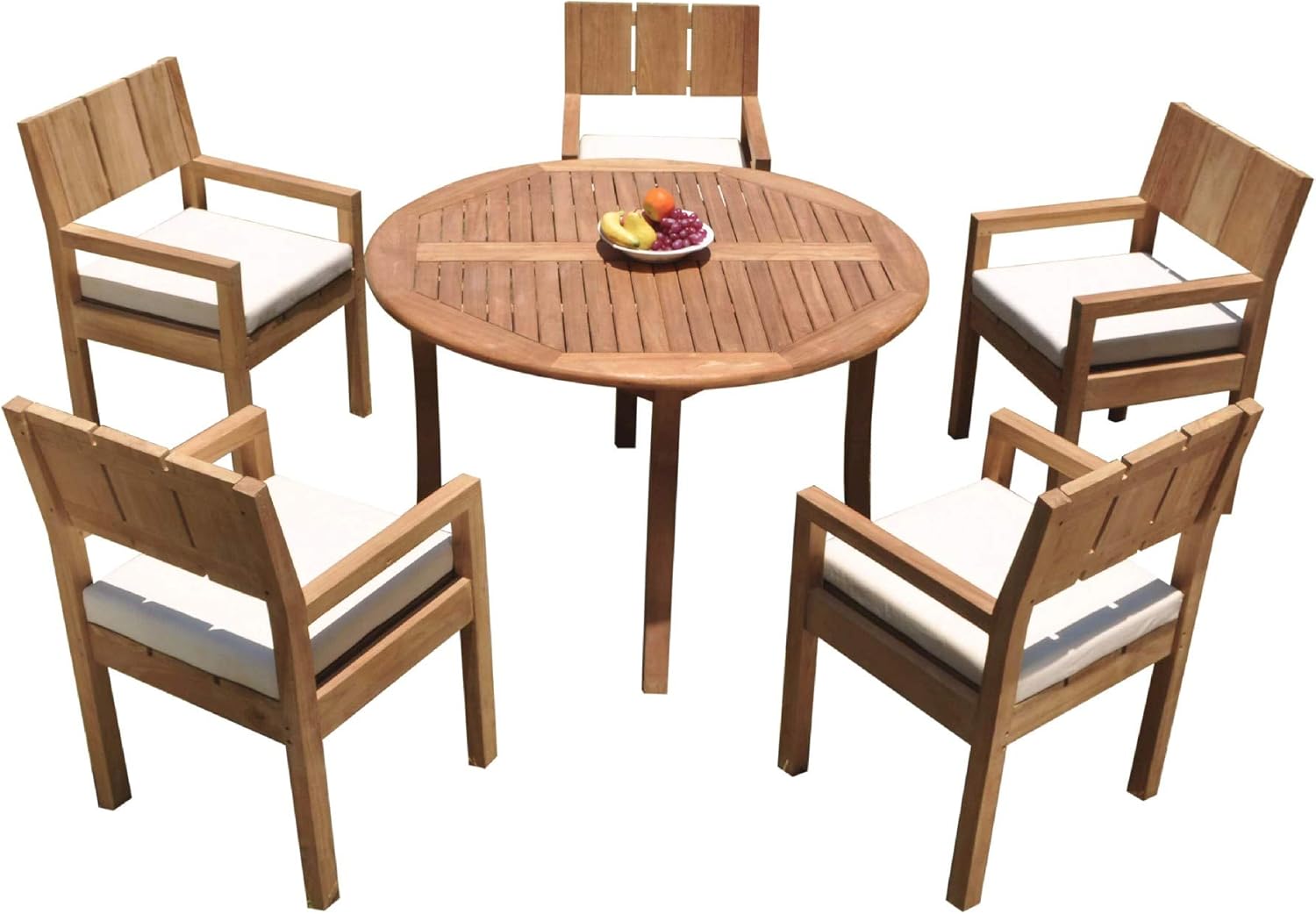 Grade-A Teak Wood 5 Seater 6 Pc Dining Set: 48" Round Table and 5 Veranda Arm Chairs #21VR1006