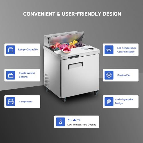 48" Refrigerator Sandwich/Salad Prep Table Refrigerator,12.85 cu. ft W 2 Door Commercial Stainless Steel Counter Food Prep Station Cooler Refrigerator for Restaurant, Bar, Shop