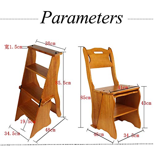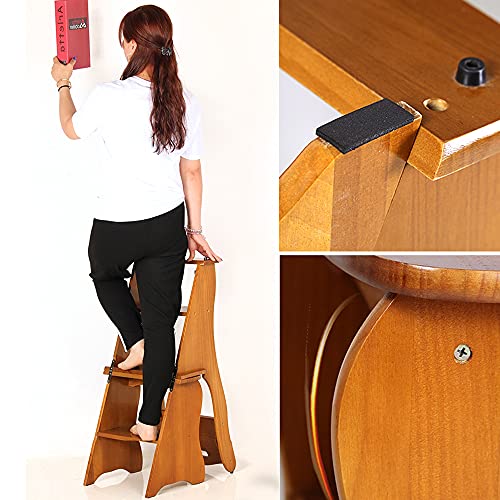 Wooden Folding Library Ladder Chair,2 in 1 Lightweight Portable Multifunctional Step Stool, 4-Step Stool Dual Purpose Stepladders, Display Stand and Flower Stand for Home(Dark Walnut)
