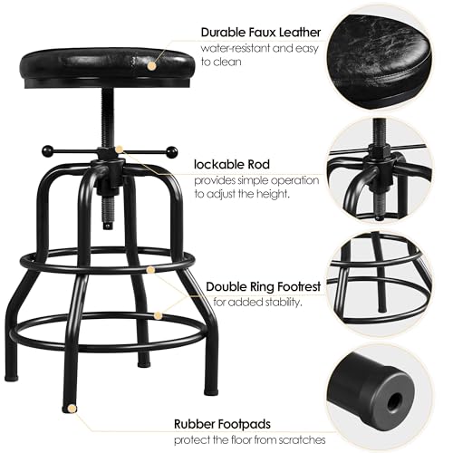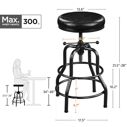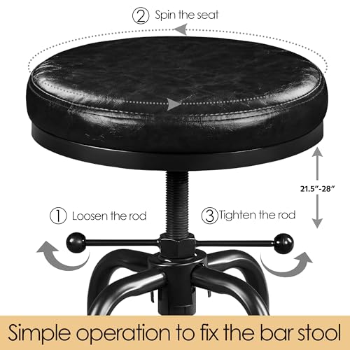 Yaheetech Industrial Bar Stools Vintage Counter Height Bar Stool with Round Faux Leather Seat Metal Stool Adjustable Kitchen Stool 21.5-28 Inch Tall Light Brown, 2PCS