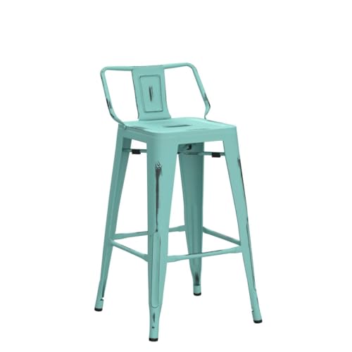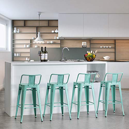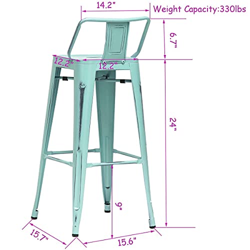 Changjie Furniture Metal Bar Stools Set of 4 Distressed Industrial Counter Bar Stool with Backs Bistro Cafe Barstools(24 inch, Distressed White)