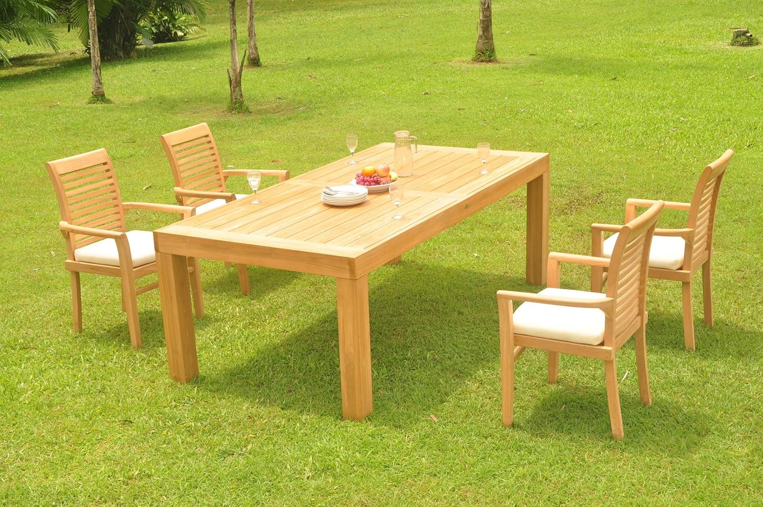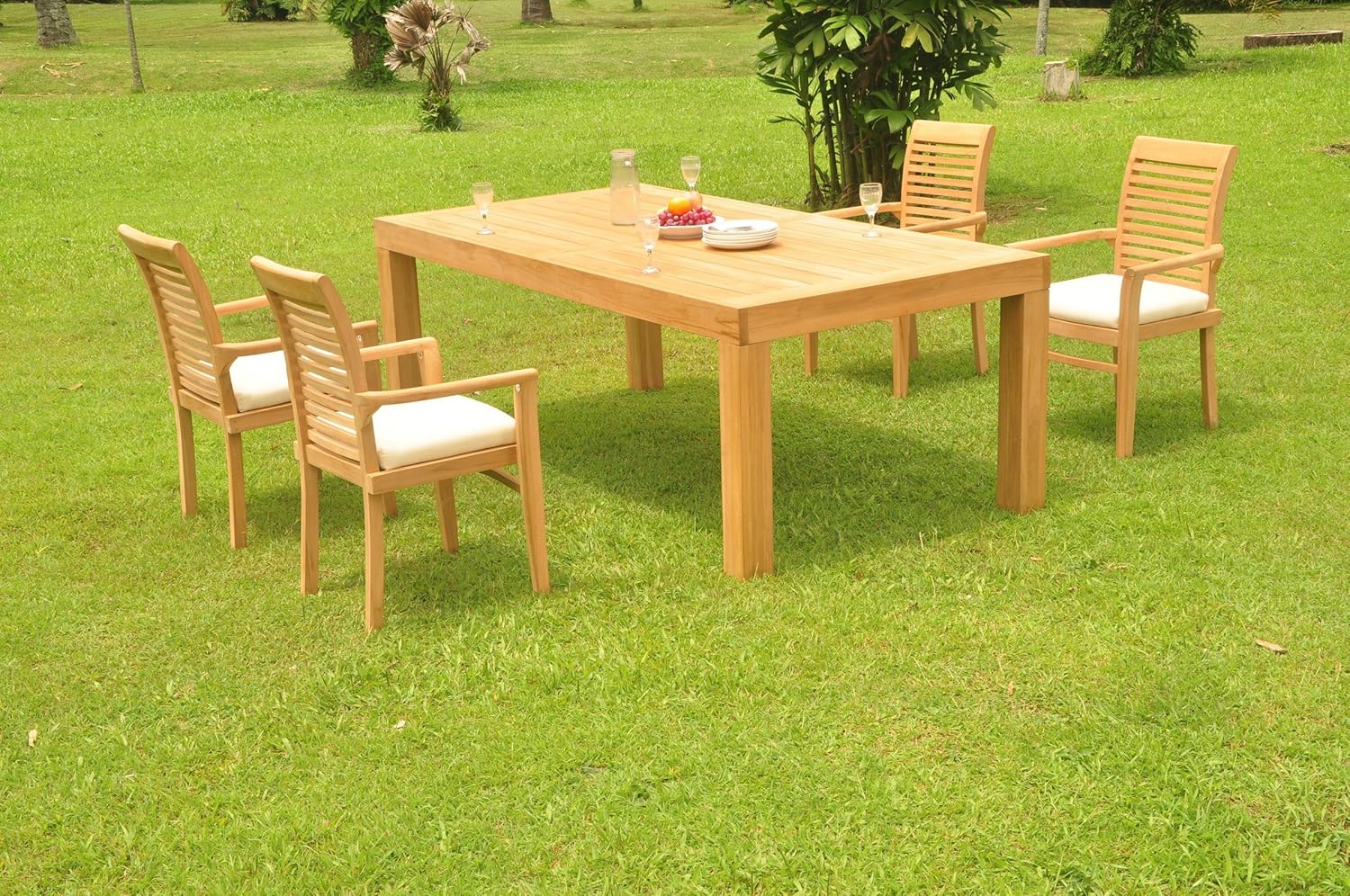 Grade-A Teak Wood 4 Seater 5 Pc Dining Set: 86" Canberra Rectangle Table and 4 Mas Stacking Arm Chairs #WFDSMS16