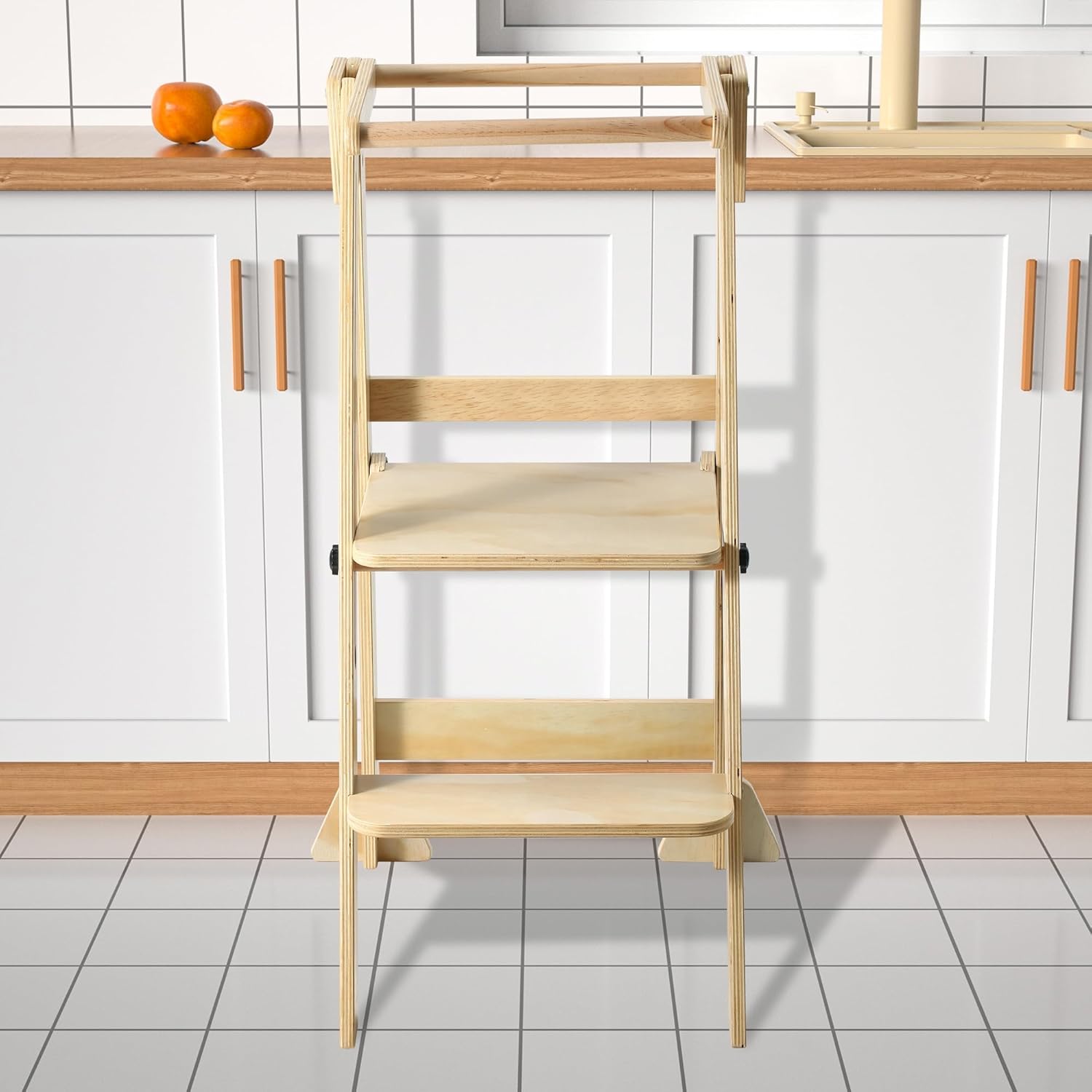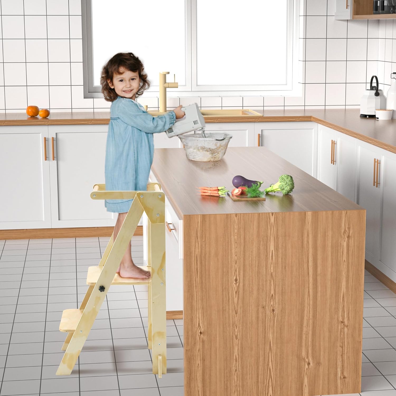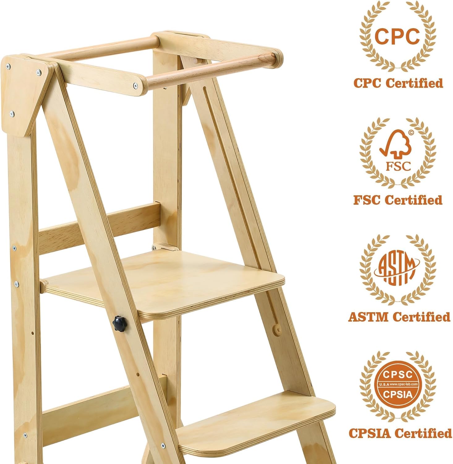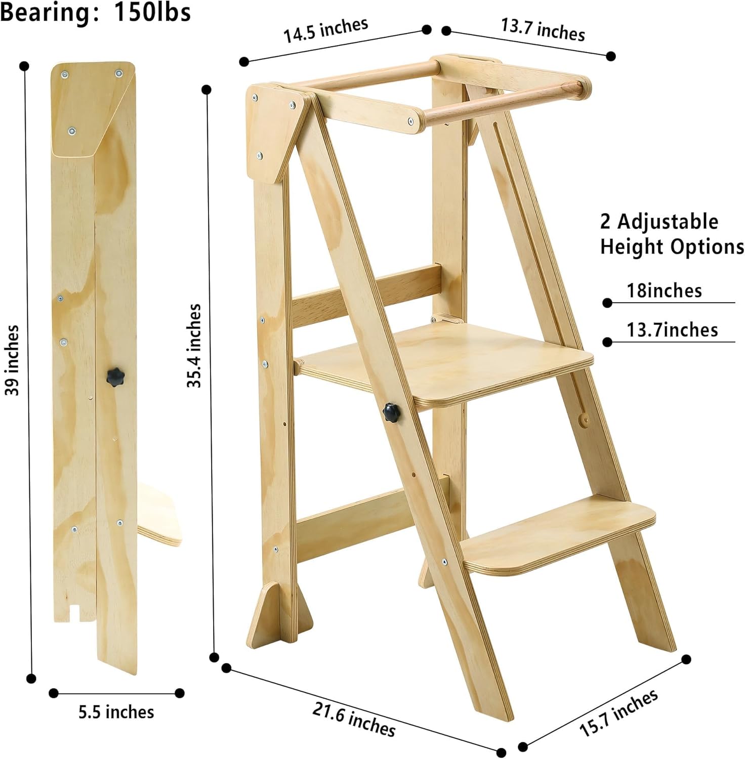 Folding Toddler Step Stool, Wooden Montessori Toddler Tower, Kitchen Tower, Kids Step Stool Toddler Tower for Toddlers and Kids 2-6 Years.