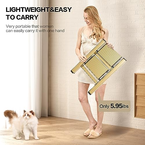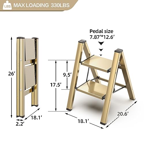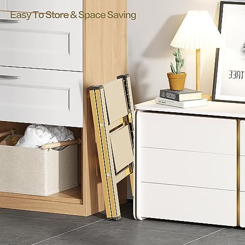 3 Step Ladder, Folding Step Stool with Aluminum Wide Pedal& Convenient Handgrip, 330lbs Capacity Steel Ladder for Household and Office (Black & Woodgrain)