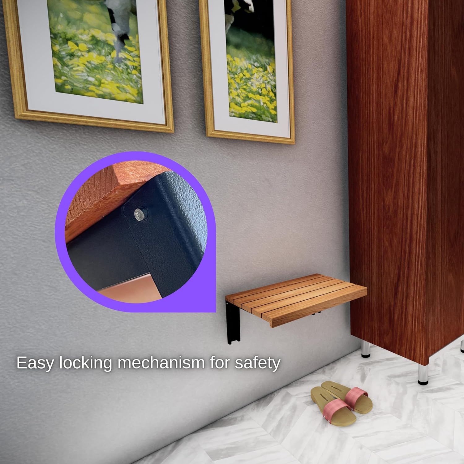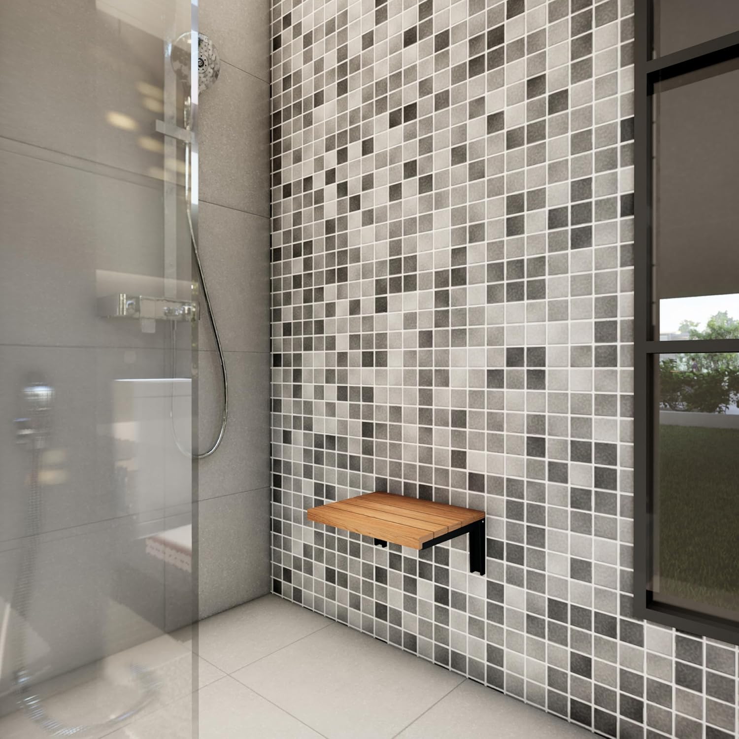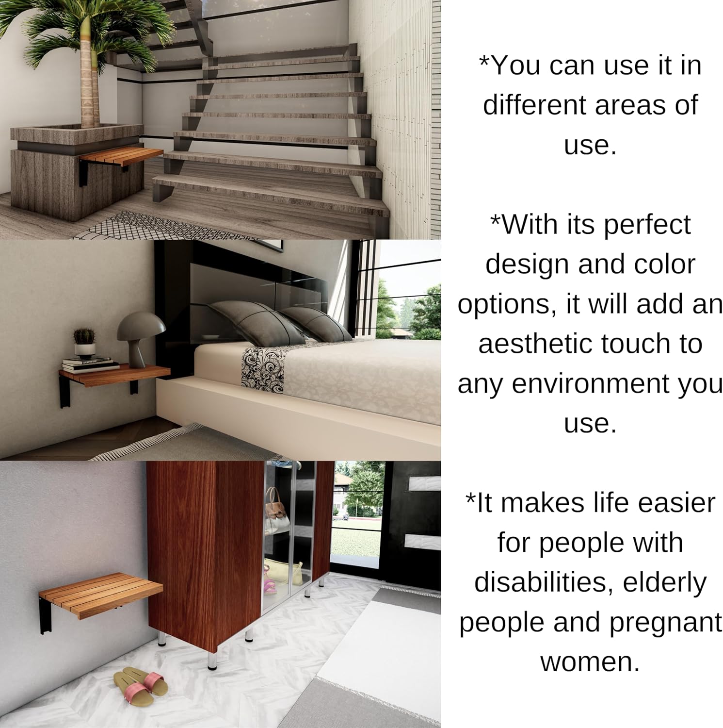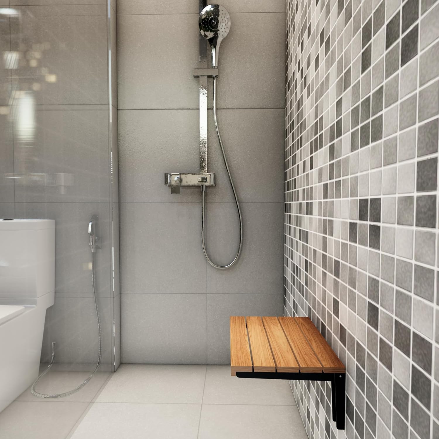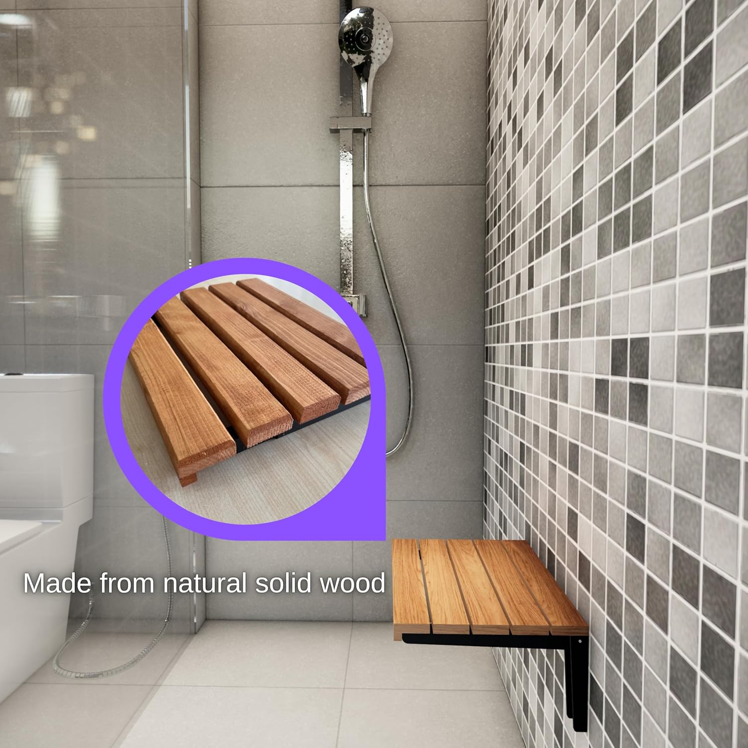 Folding Wooden Shower Seat, Foldable Wall Mounted Shower Bench, Wall Mounted Folding Wooden Shower Stool, Inside Shower Seat for Seniors Disabled Pregnant, Fold Down Shower Seat, Natural Solid Wood