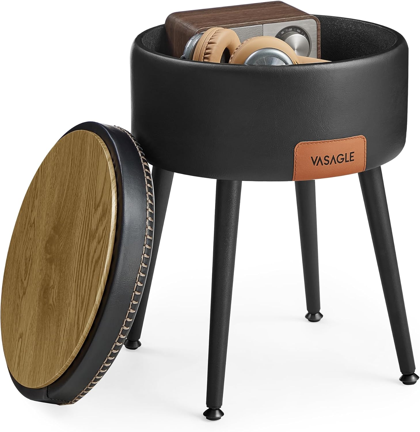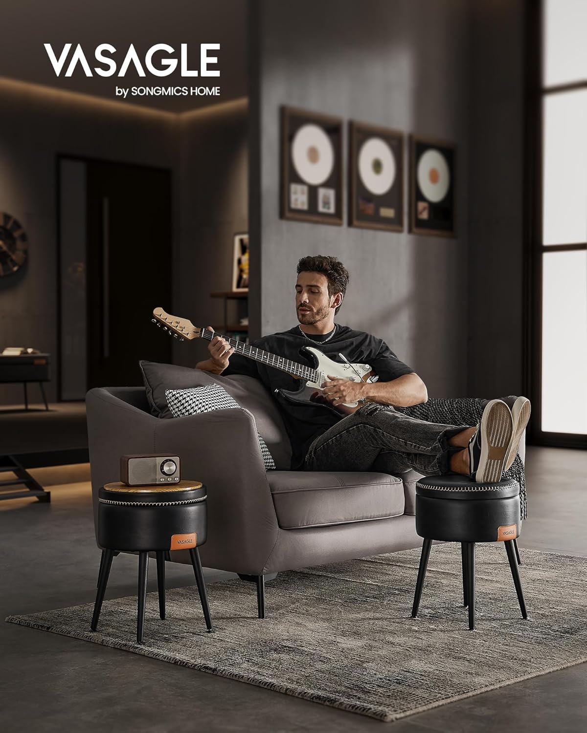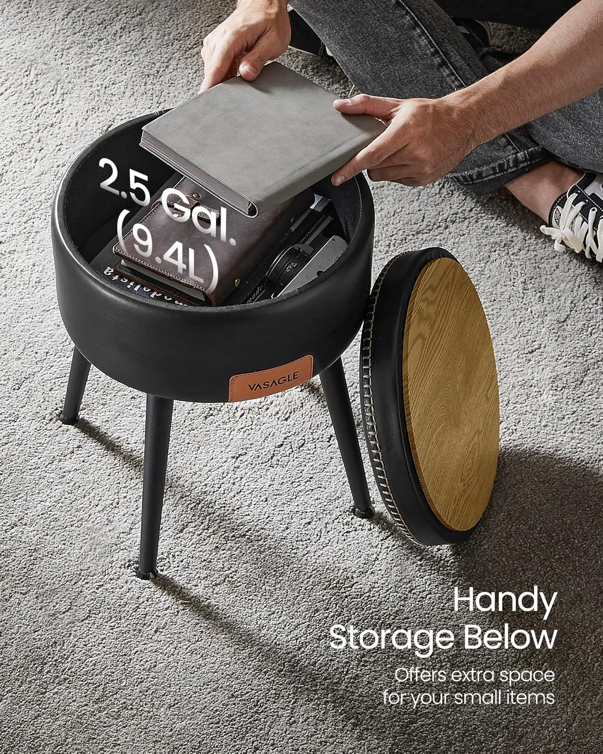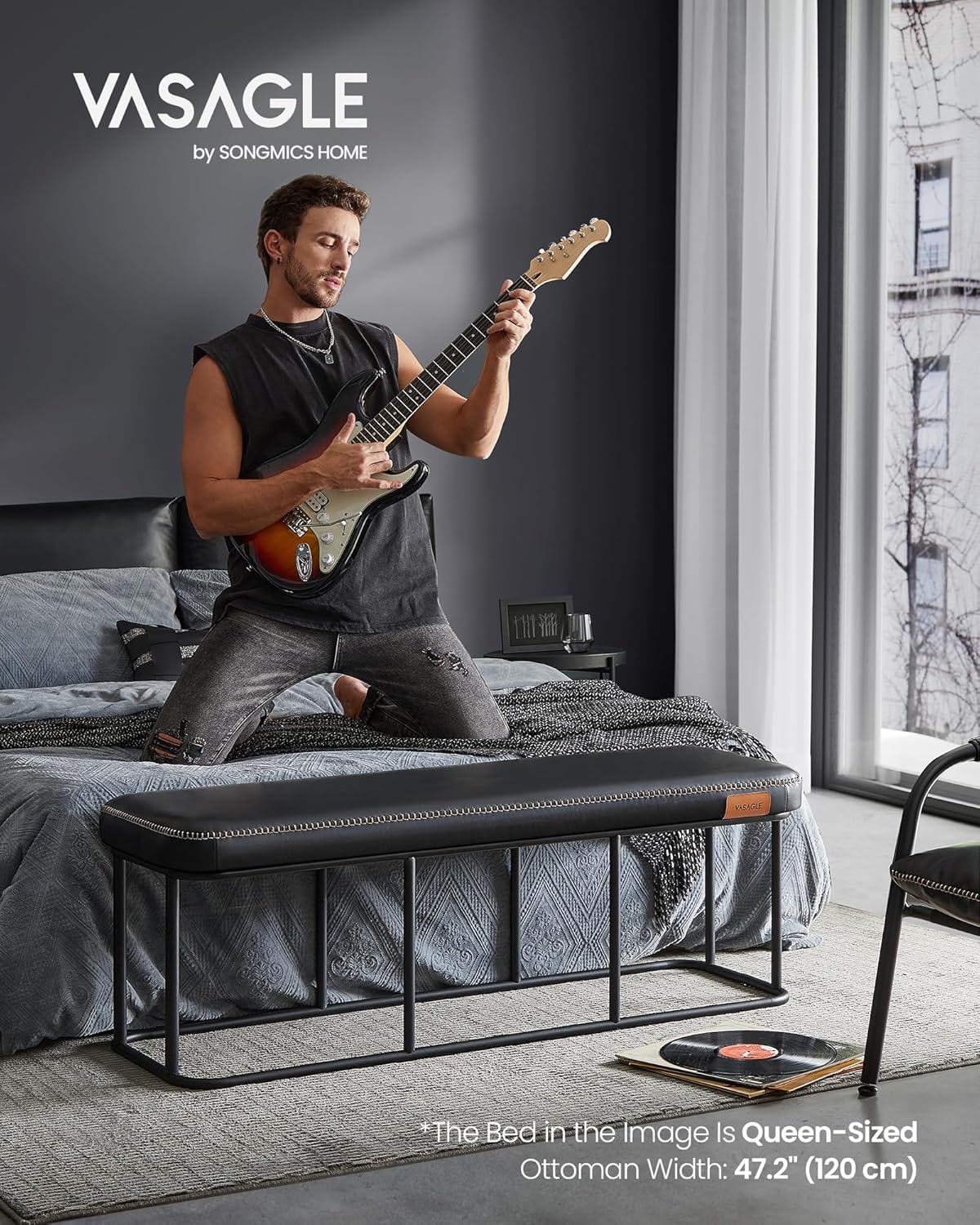 VASAGLE EKHO Collection - Bedroom Bench and Storage Ottoman Bundle, Vanity Chair Stool with Steel Legs, Synthetic Leather with Stitching, Mid-Century Modern, for Entryway ULOM073B01 and ULOM005B01