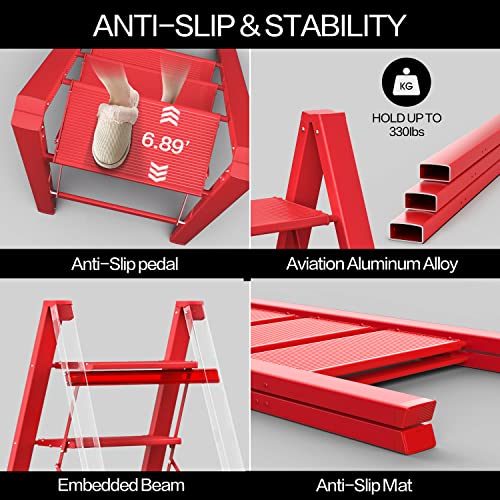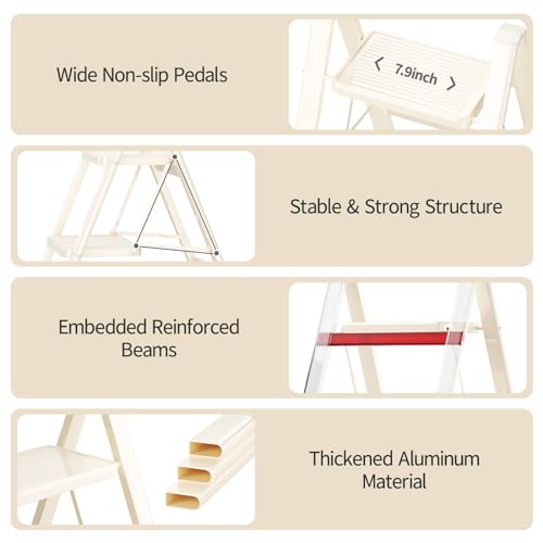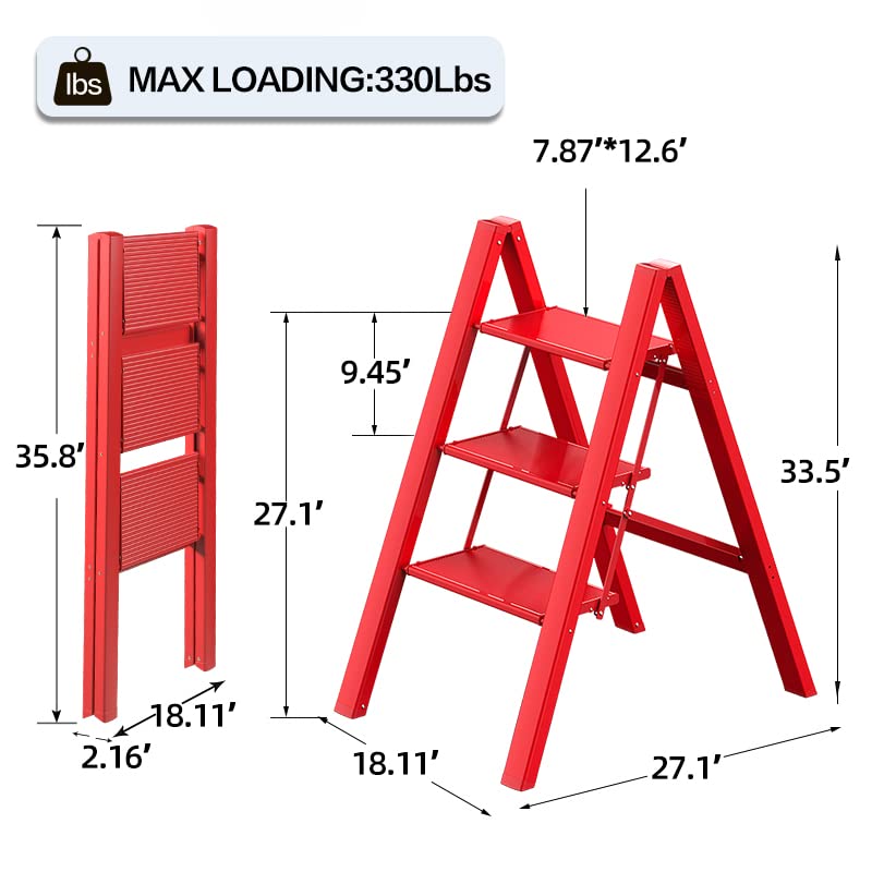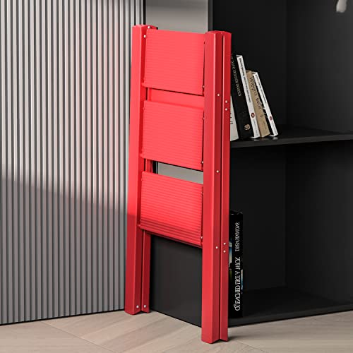 3 Step Ladder,Step Stool Folding Step Ladders for Adults Foldable Step Stools W/Wide Pedal,330 lbs Capacity Sturdy Aluminum Portable Kitchen Step Stool Black Wooden Ladder
