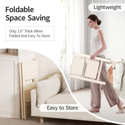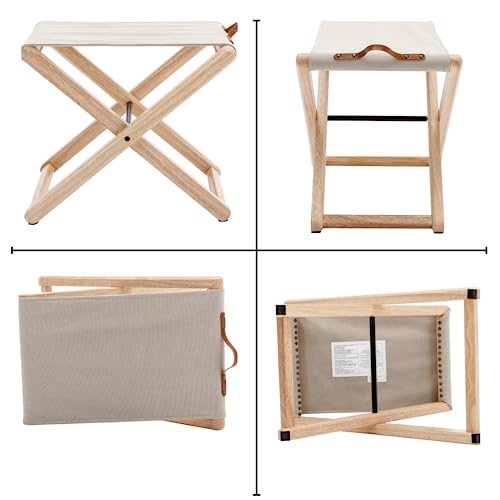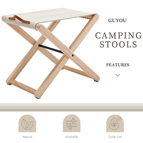 Guyou Folding Camping Stools Set of 2, Canvas Folding Stool with Wood Legs Portable Camp Stool Chairs Slacker Chair for Outdoor Fishing Picnic Travel BBQ, Beige