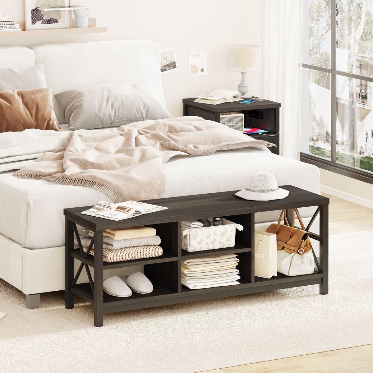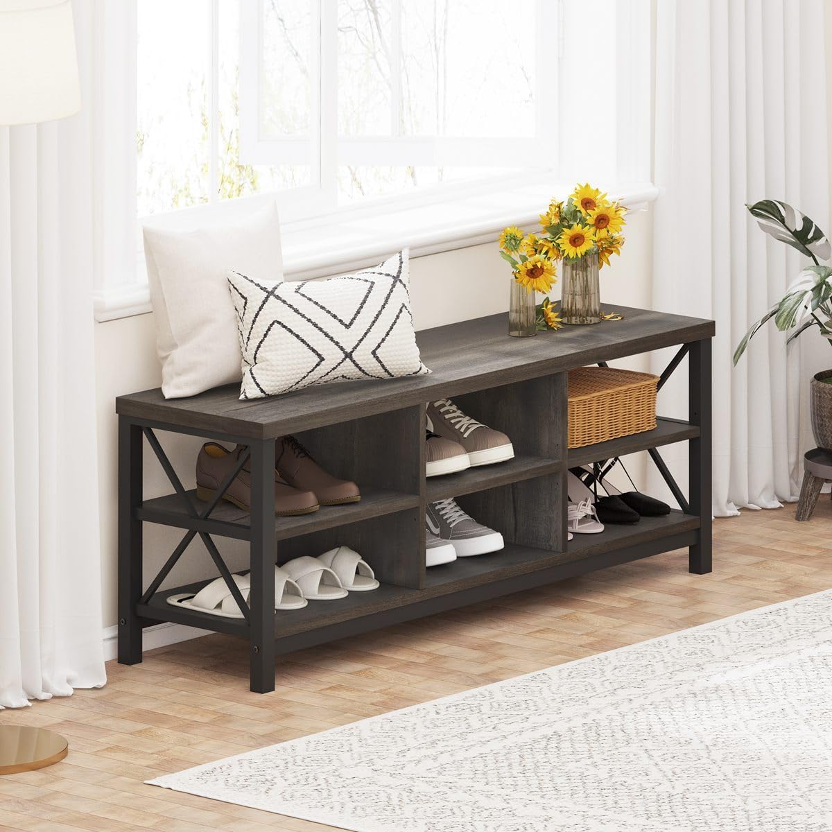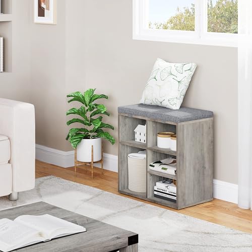Senfot Shoe Storage Bench with Cushion, 5-Cubby Shoe Rack, Adjustable Shelves, Multifunctional Shoe Organizer Bench for Entryway, Mudroom, Hallway, Living Room, and Bedroom, (Grey, 20-inch)