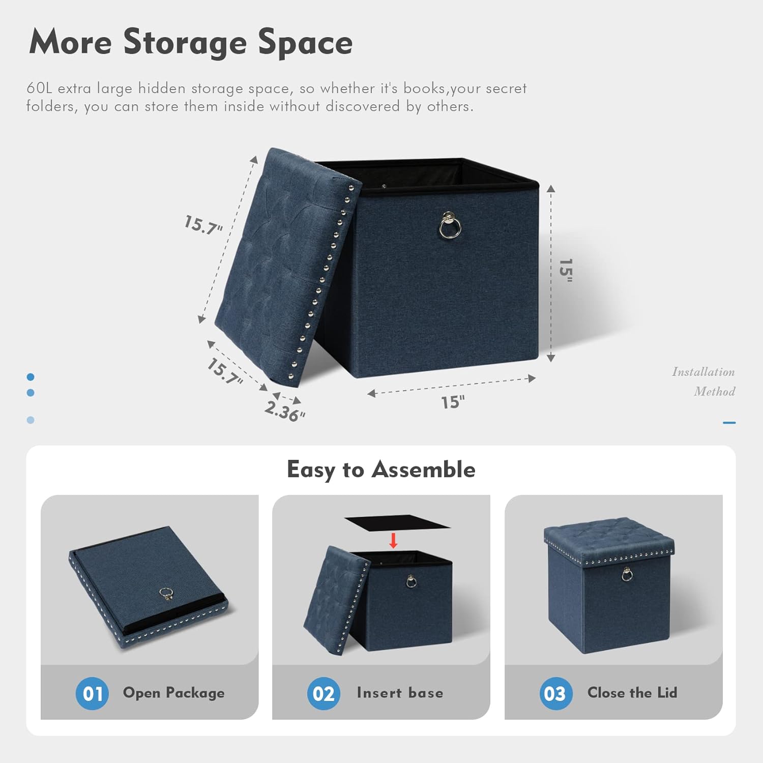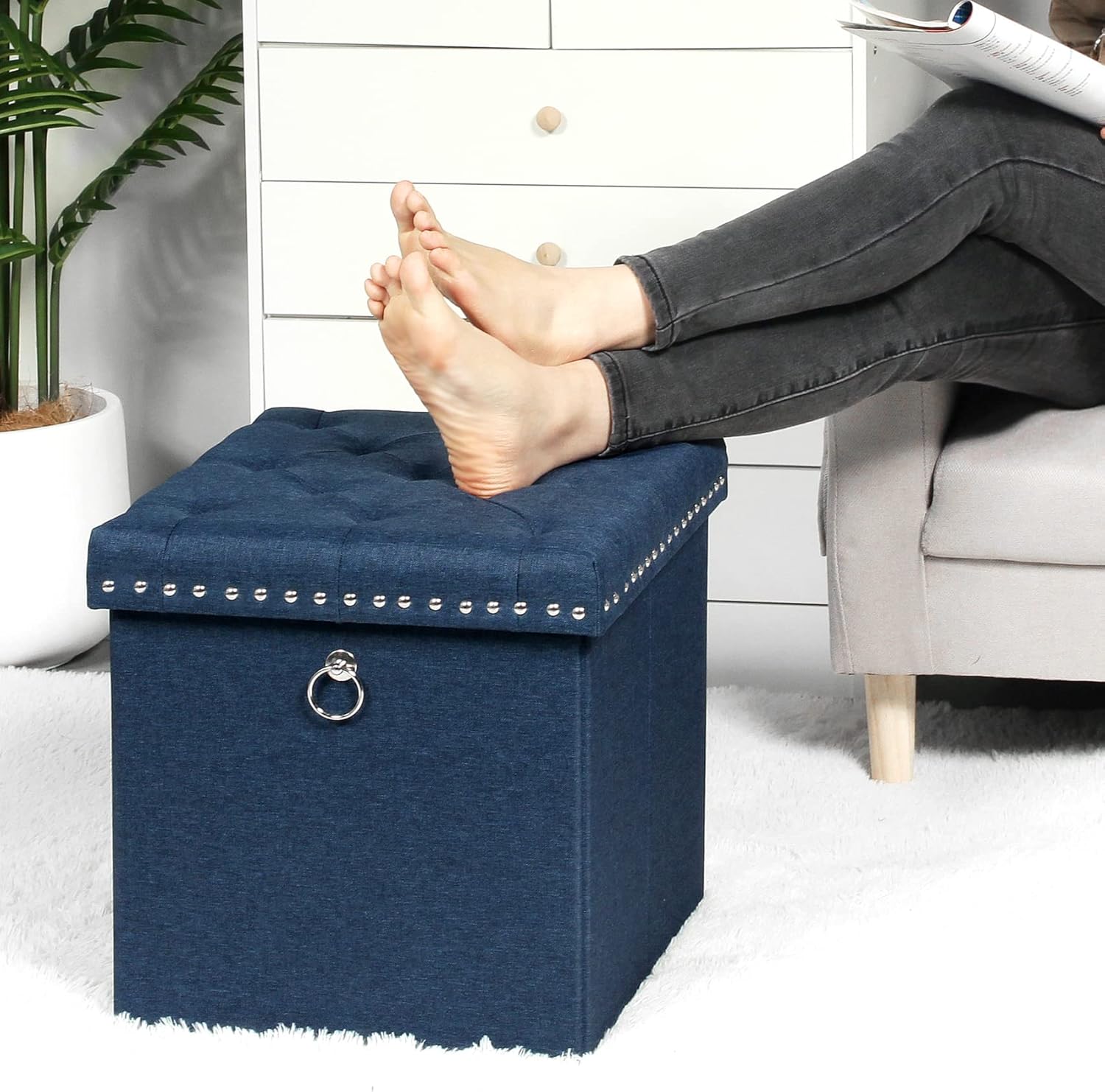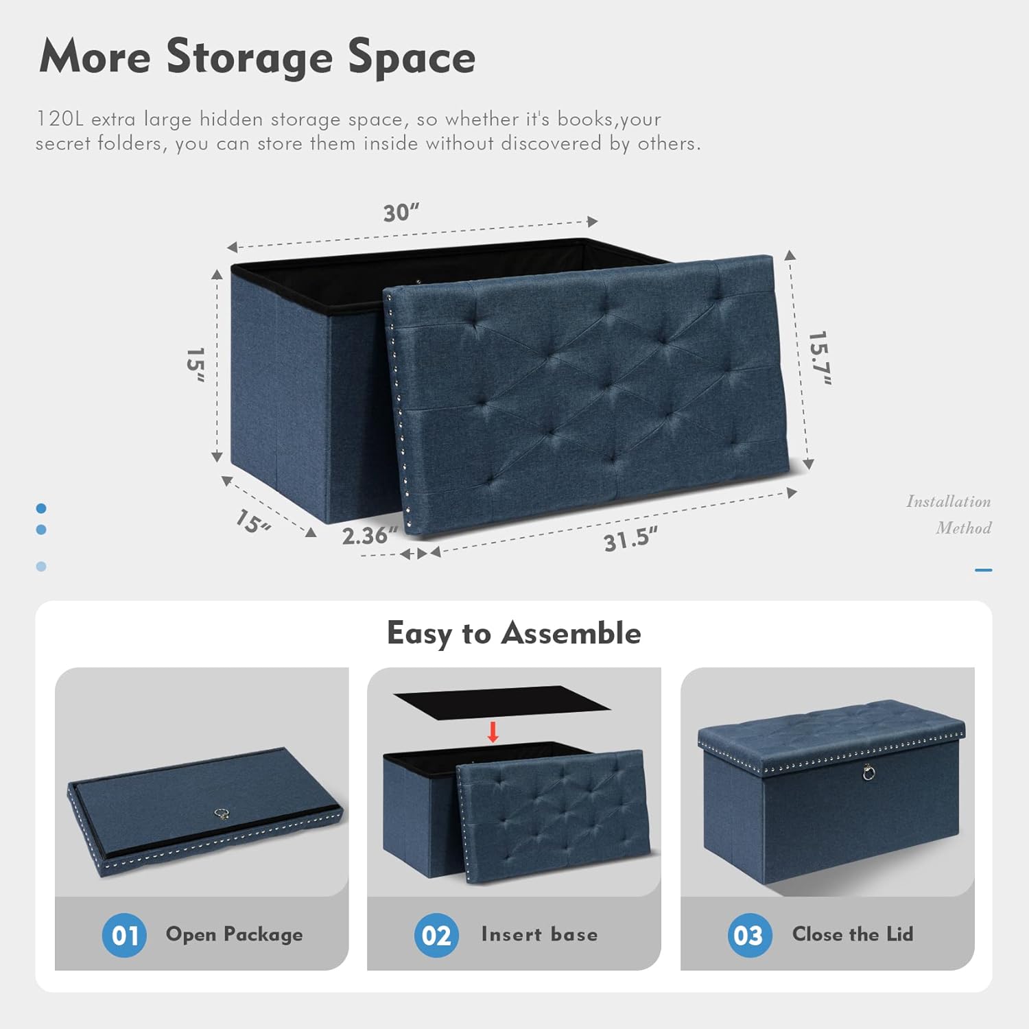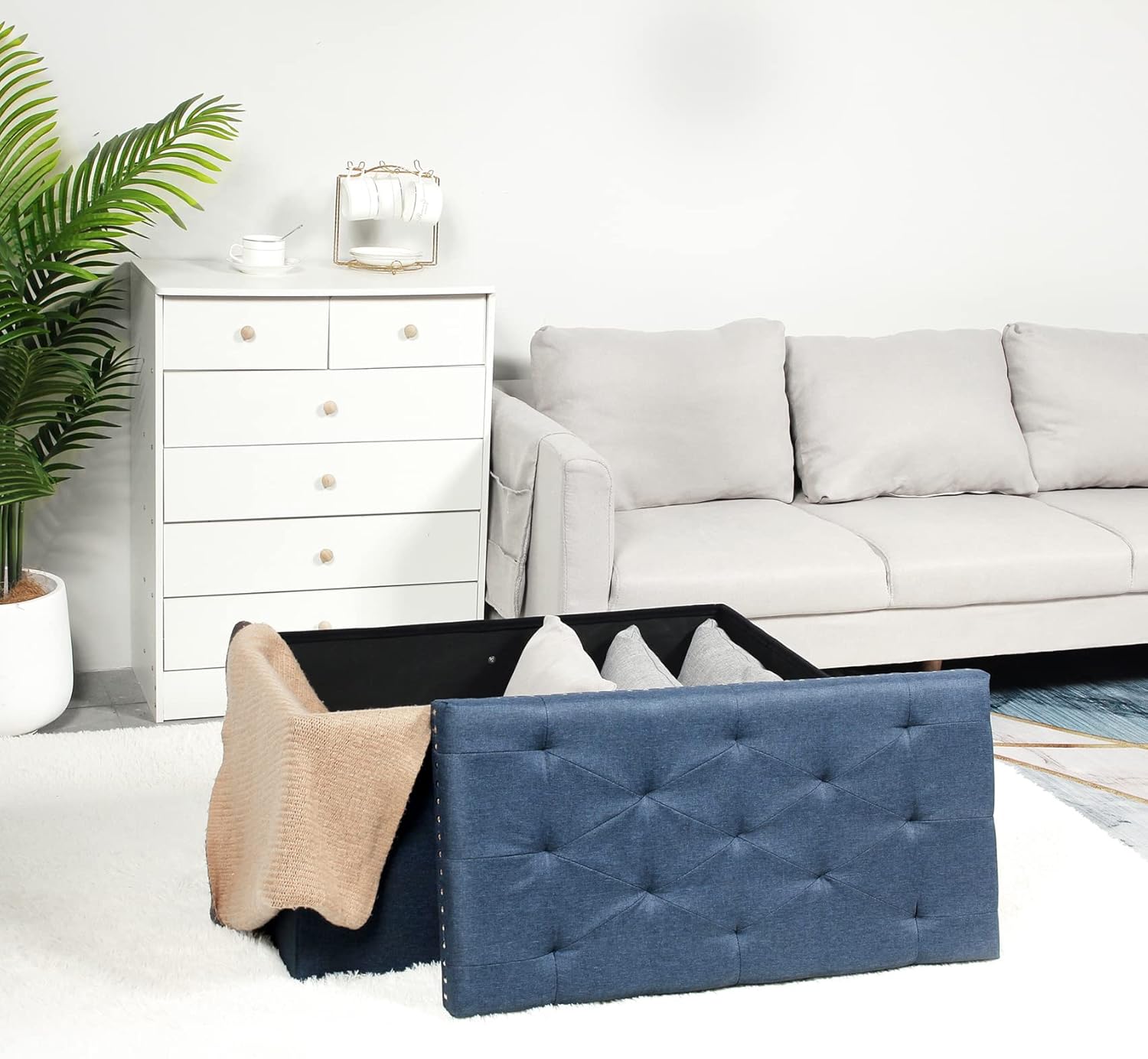 B FSOBEIIALEO Storage Ottoman Bench with Metal Ring Pulls, Storage Chest Long Bench Ottomans for Living Room Blue