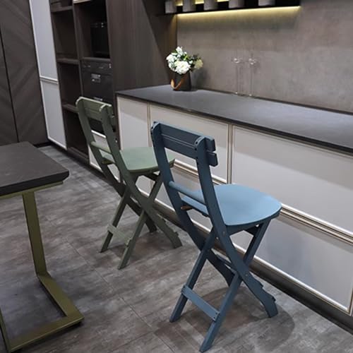 24inch Folding Bar Stool with Backrest, Modern Wooden Foldable Breakfast High Chair, Portable Tall Bar Stool for Kitchen Counter Balcony (Color : Blue)