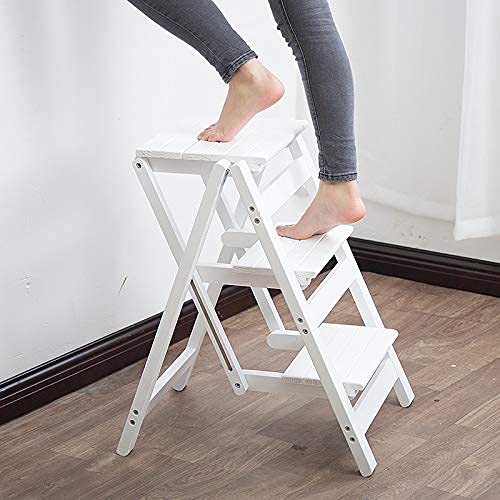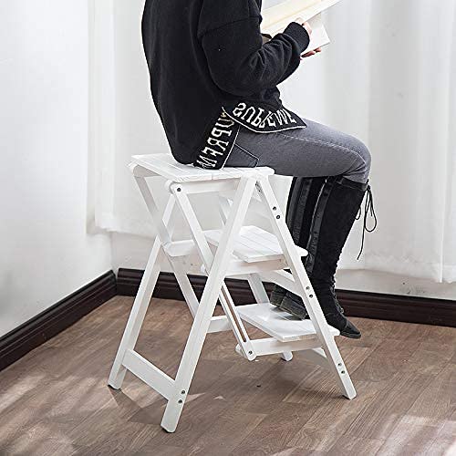 Step Stool for Adults/Step Ladder/Counter Chair, 3-Step Folding Portable Wooden Step Stool, Anti-Slip & Lightweight (Black)