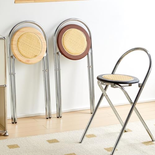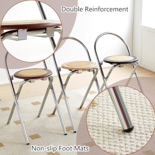 20inch Wooden Folding Bar Stool, Kitchen Breakfast Wooden Foldable Chair, Adult Use Round Portable Chair Metal Stool for Outdoor, Shop, Cafe(Brown)