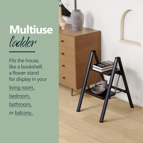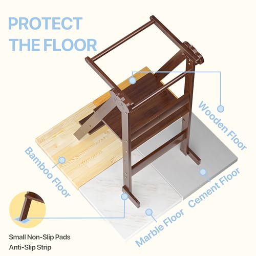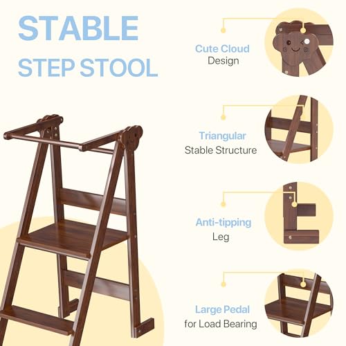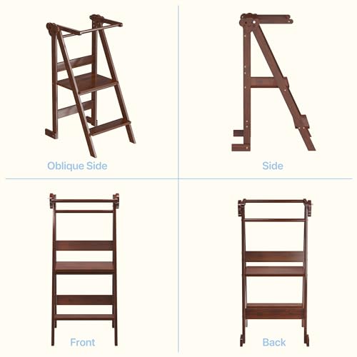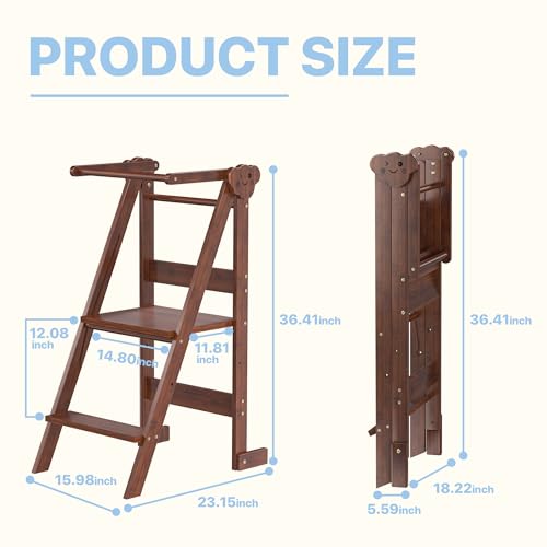 TOETOL Step Stool Foldable Toddler Tower, Bamboo 2 Step Stool for Kitchen, Living Room, Bathroom
