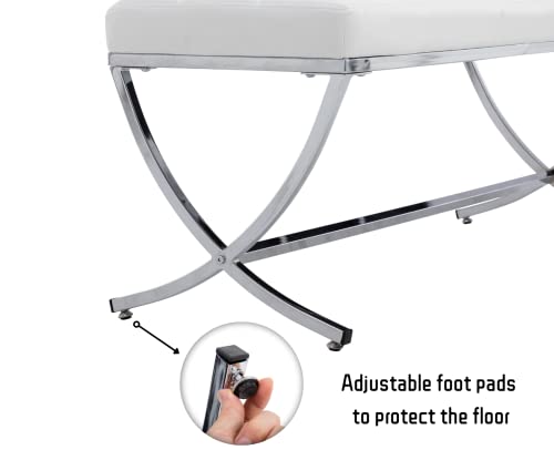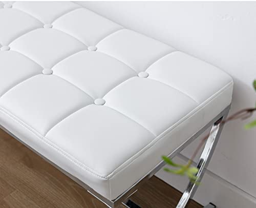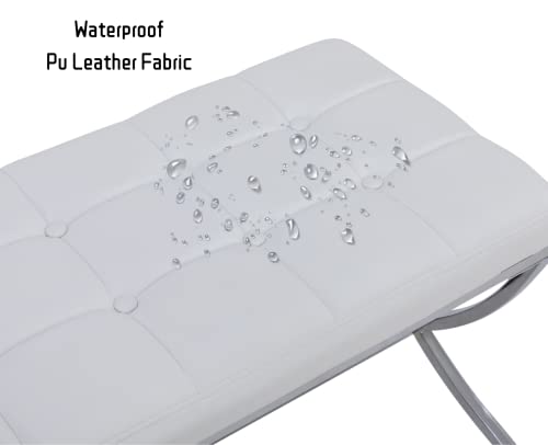 Shunzhi Waterproof Entryway Bench Modern Modern Faux Leather Vanity Bench Upholstered Dining Bench Ottoman Stool Button Tufted Bench Waiting Room Bench with Metal Legs for Living Room/Bedroom, White