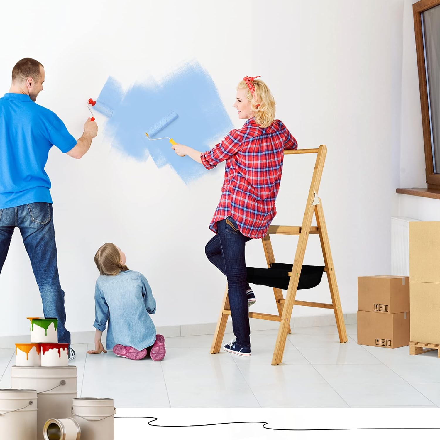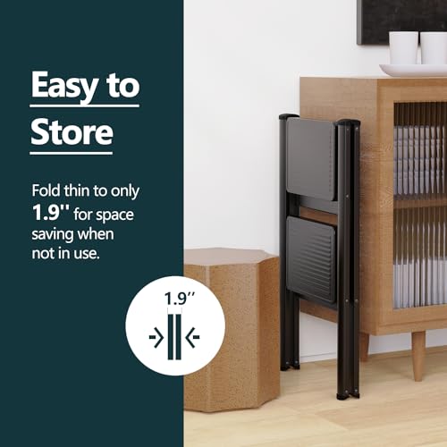 3 Step Ladder, Folding Step Stool with Non-slip Pedals, Portable Stepping Stool for Adults, Sturdy Steel Ladder, Space Saving for Home, Anti Skid Feet, Support 330lbs - Black