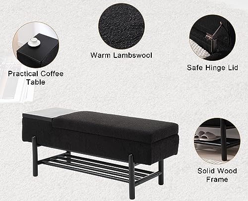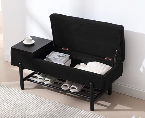 Shunzhi Modern Entryway Bench Upholstered Flip-Top Shoe Storage Bench Linen Fabric Ottoman Bench End of Bed Bench with Wood Frame/Shelf for Living Room/Bedroom/Hallway,46.5 Inches, Black