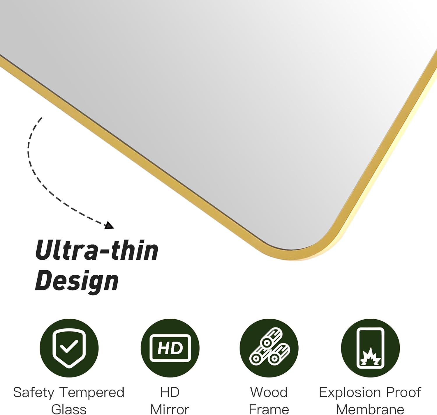 CULER Black Bathroom Wall Mirror and Gold Bathroom Rectangle Mirror