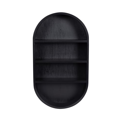 Kate and Laurel Hutton Modern Capsule Wall Shelf, 16 x 28, Black, Minimal Round Oval Wall Shelves for above Toilet Bathroom Storage
