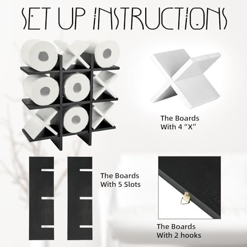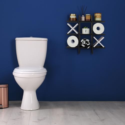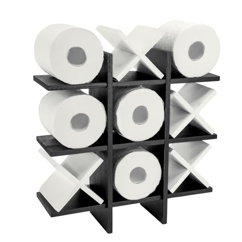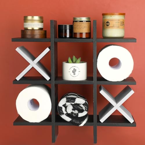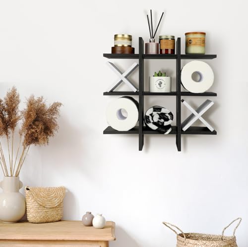 Weysat Tic Tac Toe Toilet Paper Holder Stand Toilet Paper Storage Bathroom Decor Rustic Wooden Hanging Storage Freestanding Wall Mounted Shelves Decor for Toilet Tissue Farmhouse(Black, Dark Brown)