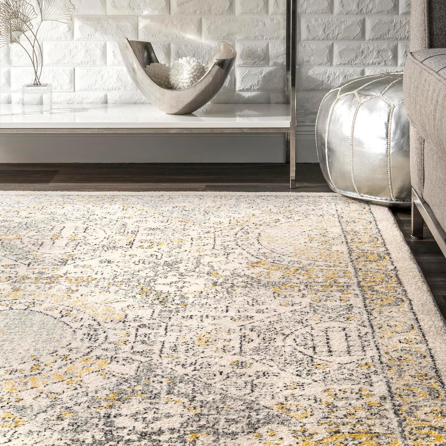 nuLOOM Minta Vintage Transitional Area Rug - 9x12 Area Rug Transitional Gold/Off-White Rugs for Living Room Bedroom Dining Room Kitchen