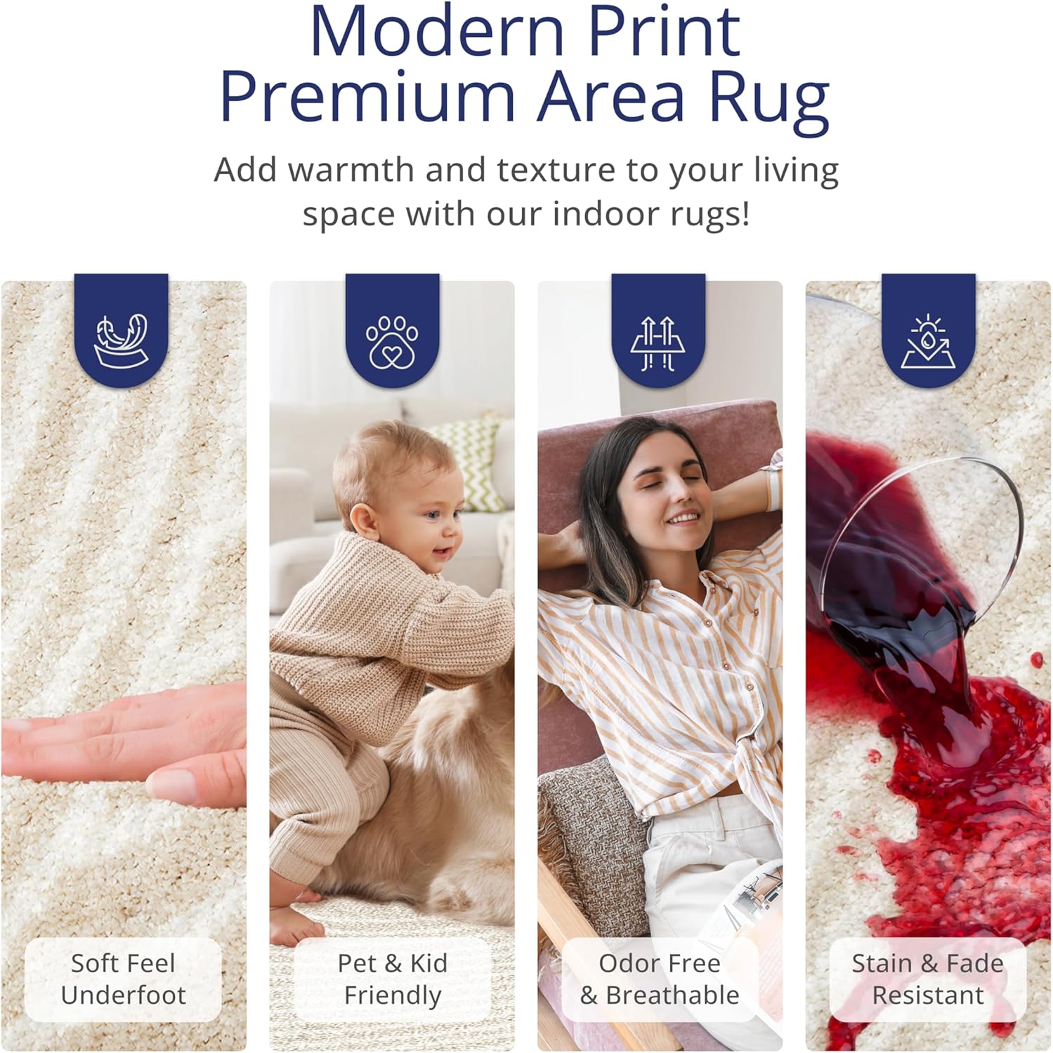 Abani Nuevo Collection Area Rug - Transitional Beige/Cream Design -5'3" x 7'6" - Easy to Clean - Durable for Kids & Pets - Non-Shedding - Medium Pile - Soft Feel - for Living Room, Bedroom