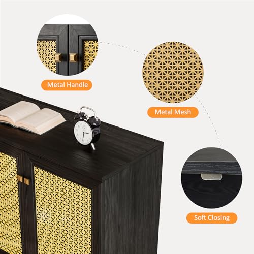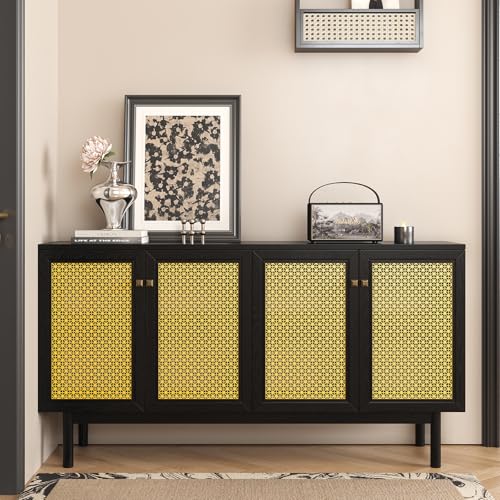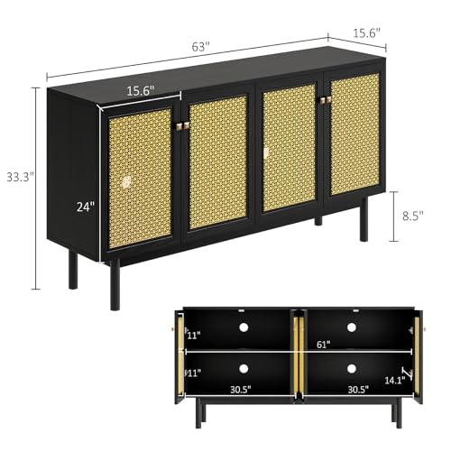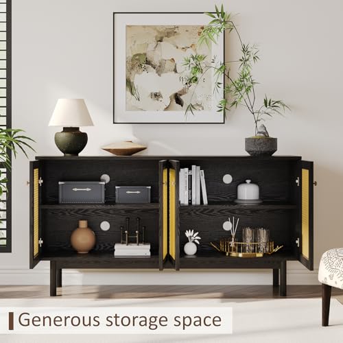 Albott 63" Storage Buffet Cabinet, Mid-Century Sideboard with Adjustable Shelves and 4 Doors, Credenzas Storage Cabinet for Living Room, Dining Room, Bedroom, Natural Oak