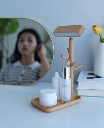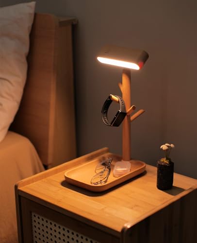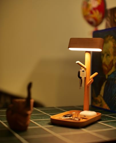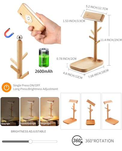 Real Wooden Table Lamp Tree Trunk Faux Wood Column Rechargeable Led Desk Lamps Magnetic 360°Rotate Battery Powered Wall Night Lights for Bedside Living Edge Table (Black Walnut)