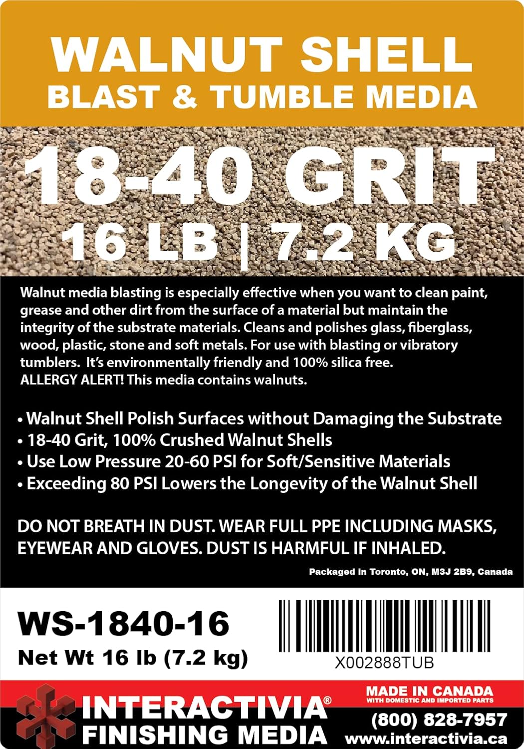 16 lbs or 7.2 kg Ground Walnut Shell Media 18-40 Grit - Fine Walnut Shells for Tumbling, Vibratory Or Blasting