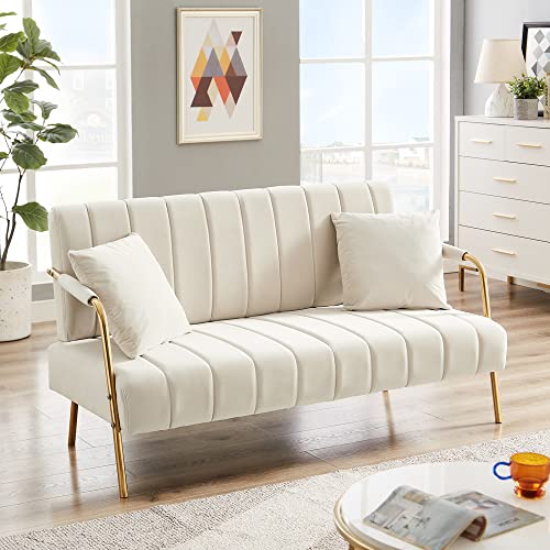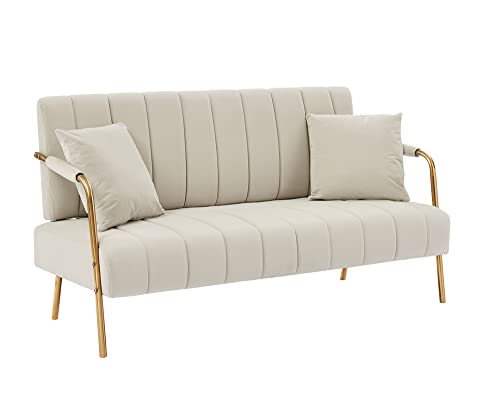 Upholstered Loveseat Sofa with Two Throw Pillows, Velvet Small Couch with Rose Golden Armrests and Legs, Accent Sofa Twin Sofa for Compact Space/Apartment/Dorm (Dark Blue + Velvet + Foam)