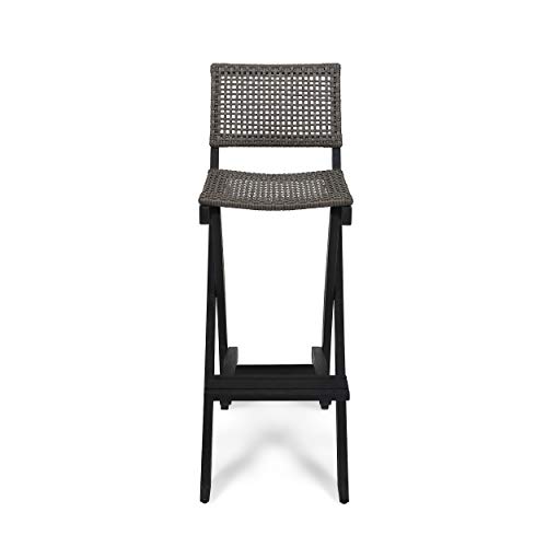 GDFStudio Outdoor Folding Acacia Wood Barstools (Set of 2), and Brown