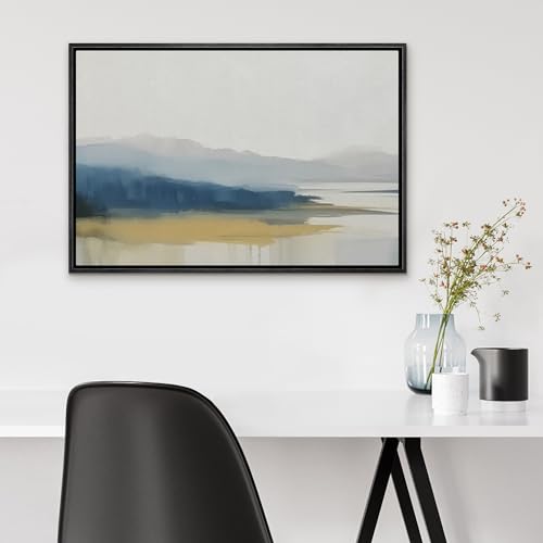 SIGNLEADER Framed Canvas Print Wall Art Grunge Pastel Brown Watercolor Vista Abstract Shapes Illustrations Modern Art Decorative Minimal Relax/Calm for Living Room, Bedroom, Office - 24"x36" WHITE