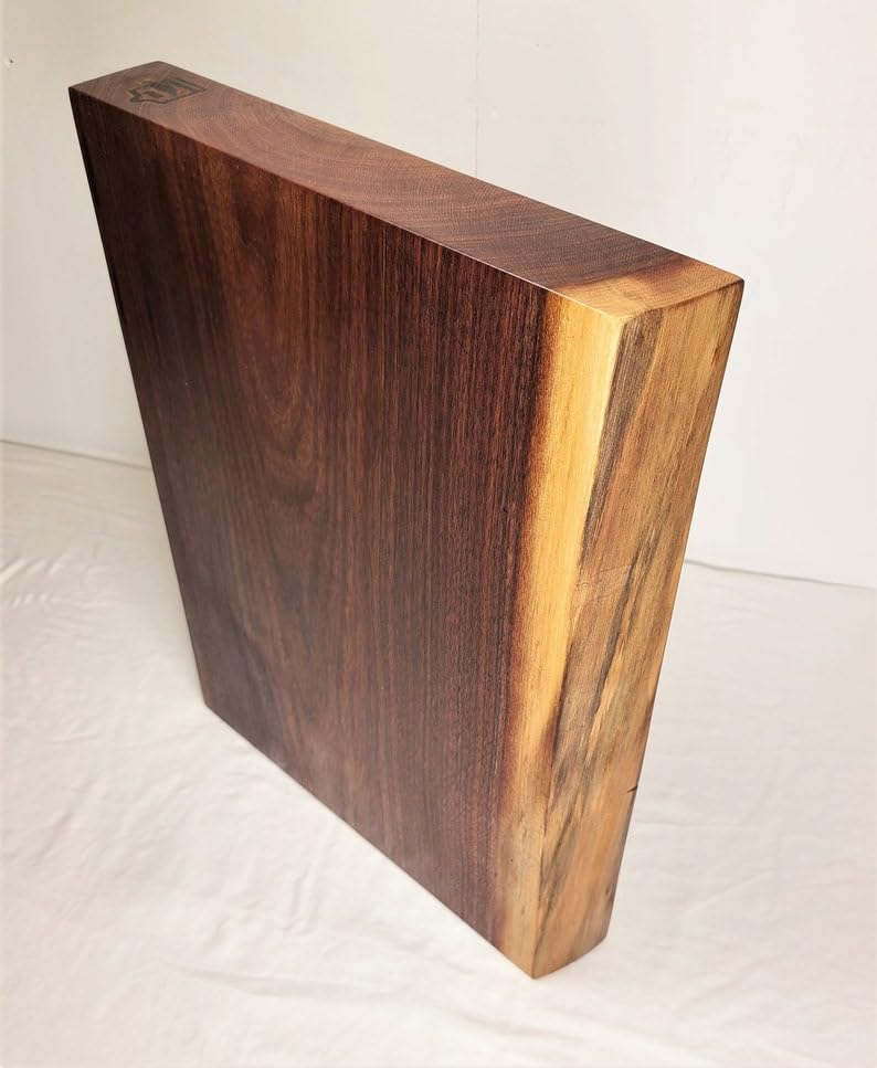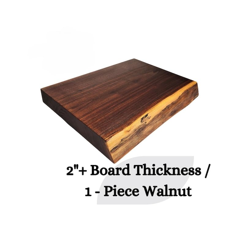 Hefty Black Walnut, Live Edge Cutting Board, 2" Thick Single-Plank Solid Walnut Board, Serving Board (12-13" D X 16" W X 2" H inches)