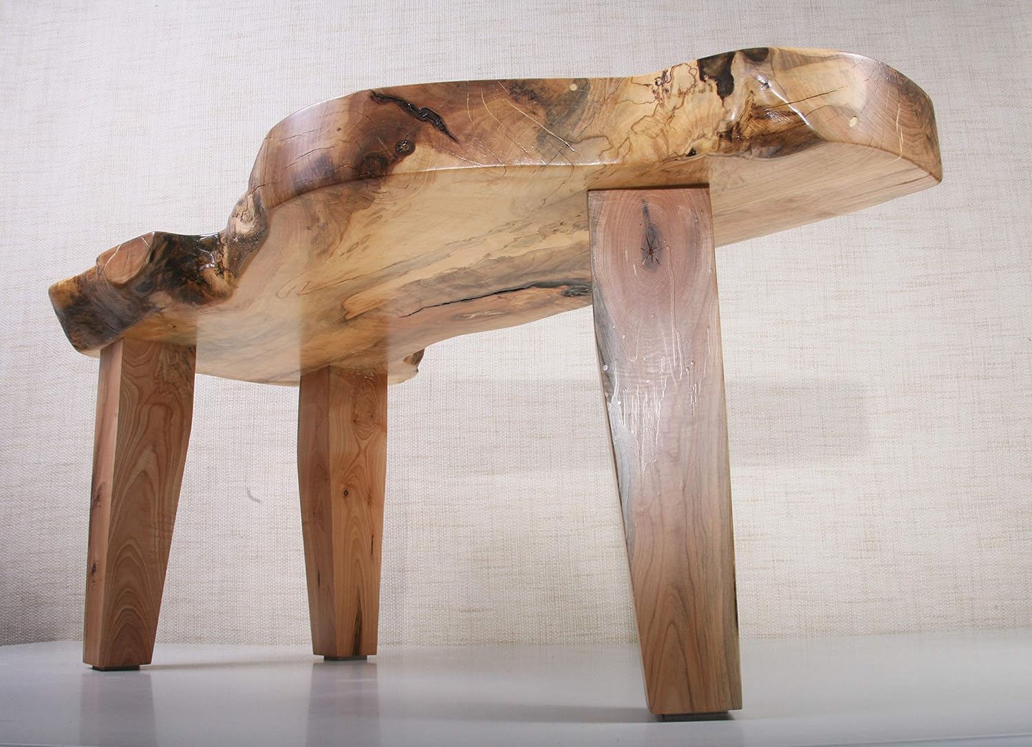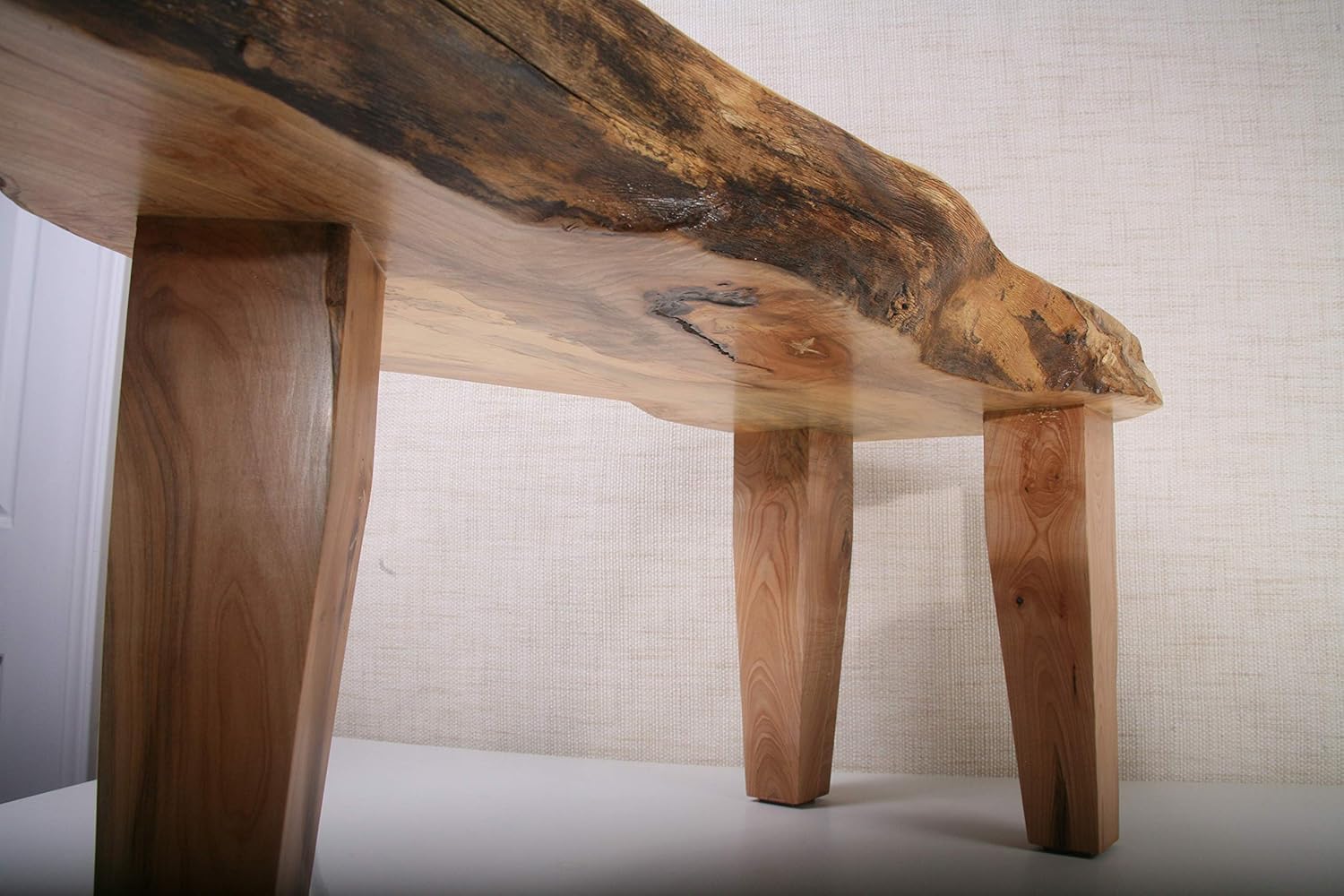 Maple Three-leg Table with Live Edge, and black walnut shells hidden inside