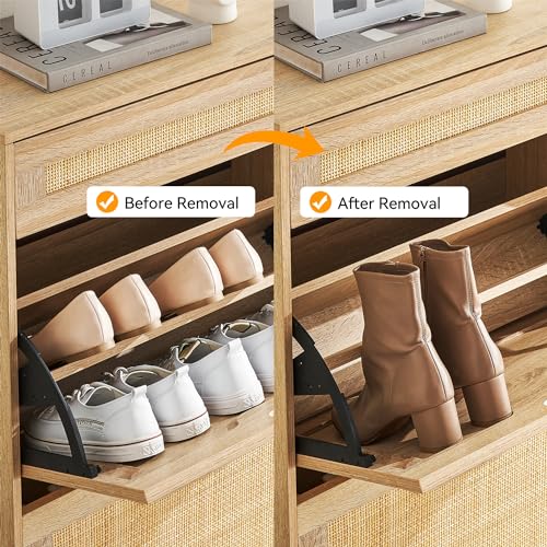 GAOMON Rattan Shoe Storage Cabinet with 3 Flip Door and 1 Drawer, Freestanding Shoe Organizer Rack for Entryway, Hidden Shoe Cabinet with 3-Tier Adjustable Shelves for Hallway Living Room (Oak)